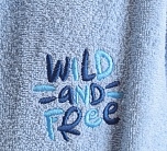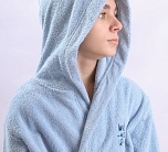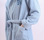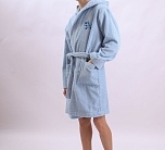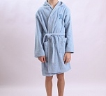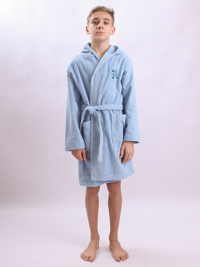 Халат детский голубой из двухсторонней махры. Халат для мальчика с капюшоном, поясом и карманами. На груди вышивка.