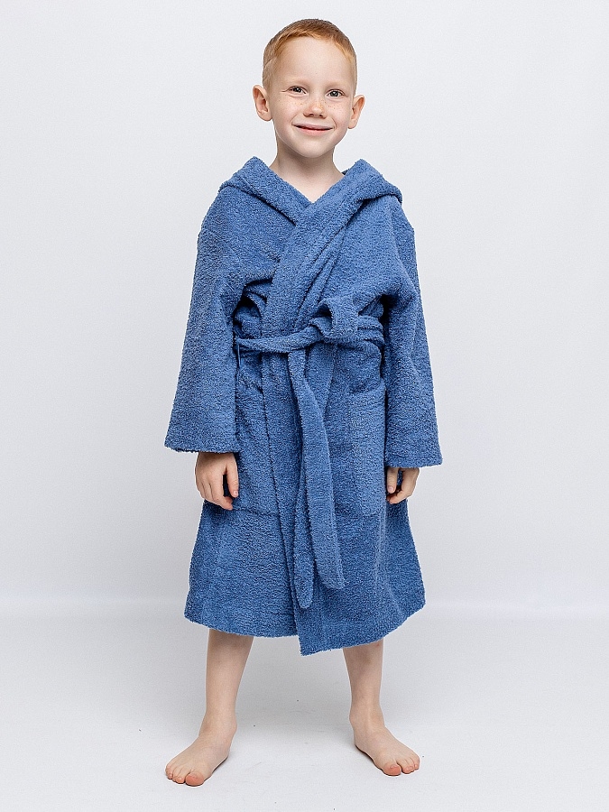 Халат махровый для мальчика синий batik. Большой капюшон, глубокие карманы и удобный пояс. Выполнен из прочной двухсторонней махры, отлично впитывающей влагу. Мягкий и комфортный халатик на каждый день. Дышащая ткань на основе 100% хлопка.
