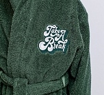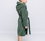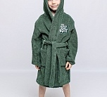 Халат махровый для мальчика зеленого цвета с нашивкой на груди. Большой капюшон, глубокие карманы и удобный пояс. Выполнен из прочной двухсторонней махры, отлично впитывающей влагу. Мягкий и комфортный халатик на каждый день.