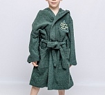 Халат махровый для мальчика в расцветке хаки с нашивкой в виде надписи на груди. Большой капюшон, глубокие карманы и удобный пояс. Выполнен из прочной двухсторонней махры, отлично впитывающей влагу. Мягкий и комфортный халатик на каждый день: для бассейна, бани, водных процедур.