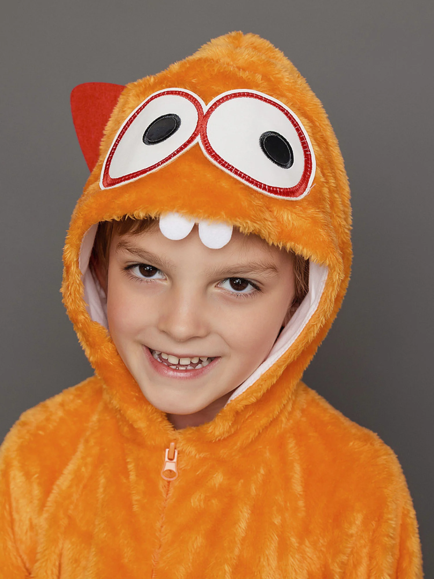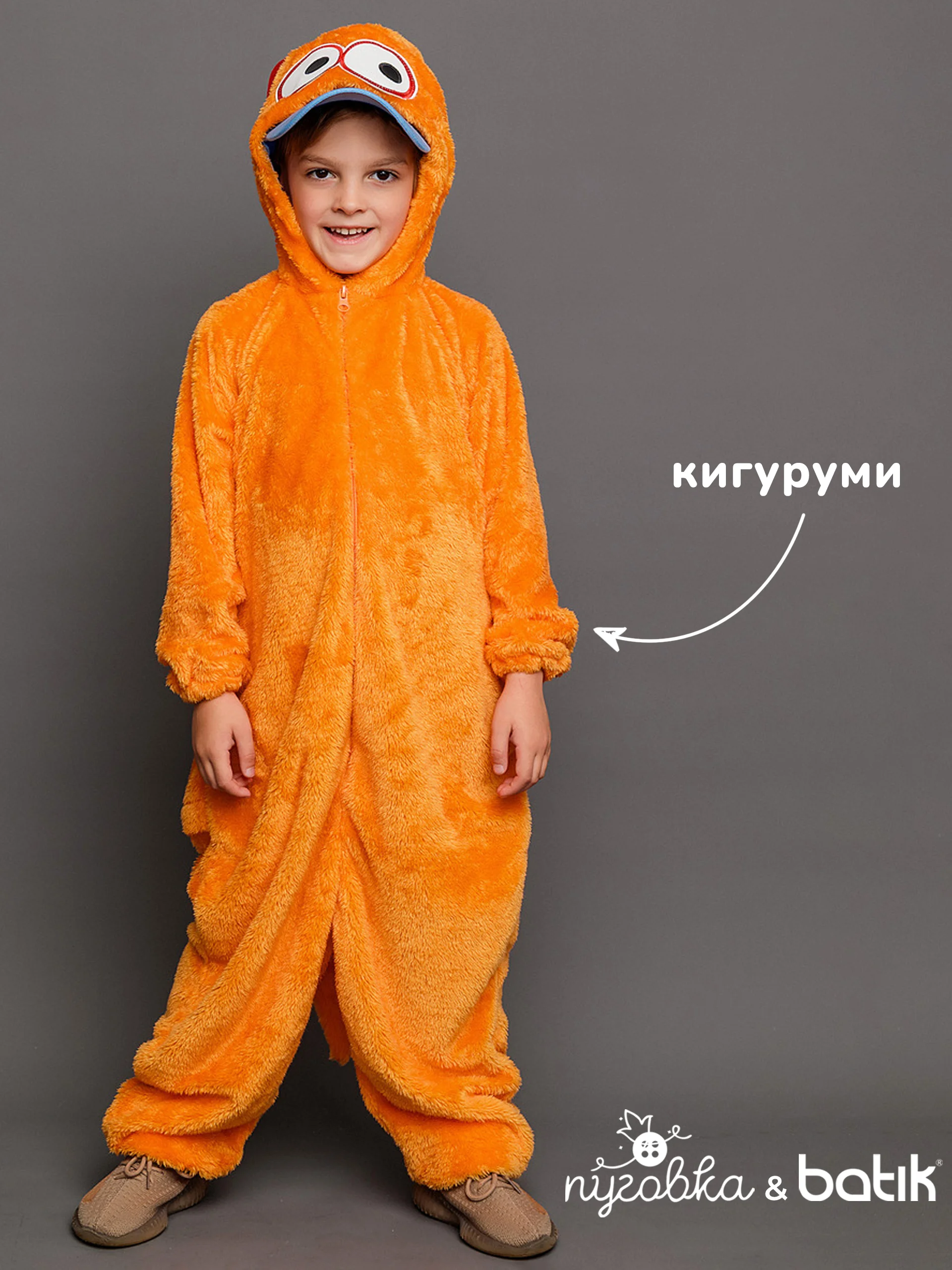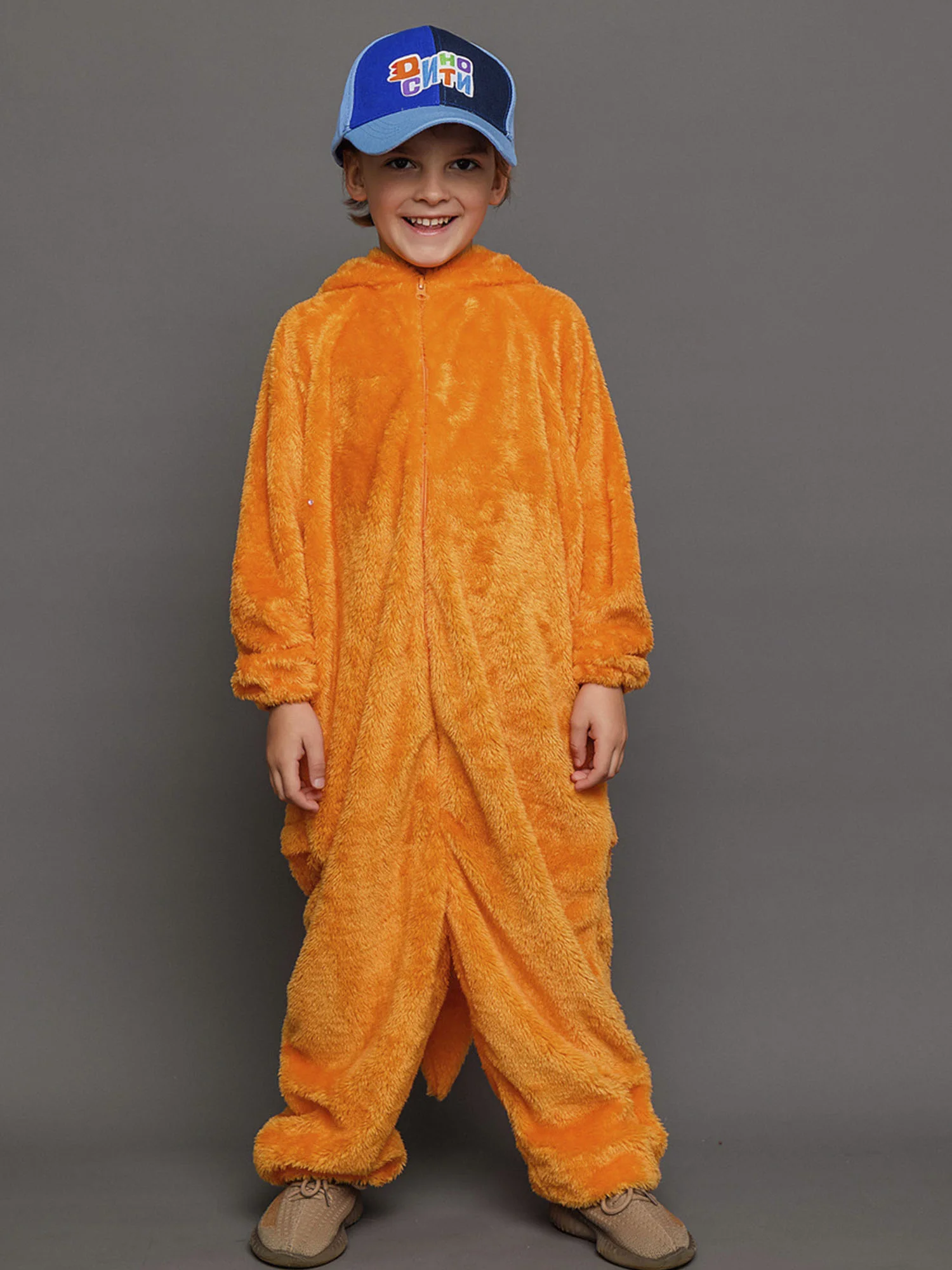 Динозаврик Рики — главный герой детского мультсериала "Диносити". Костюм Рики детский представляет собой оранжевый комбинезон кигуруми. Капюшон с фетровыми нашивками, застежка-молния по центру спереди, длинные рукава и брючины. Сзади есть хвост, а под ним удобная застежка-молния.