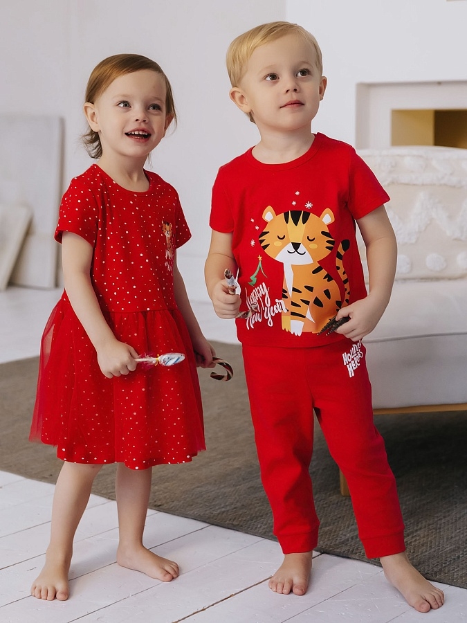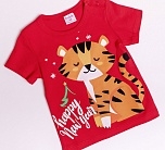 Футболка для новорожденных и малышей до 2 лет хлопок. Праздничная футболка красного цвета из новогодней капсулы трикотажа.