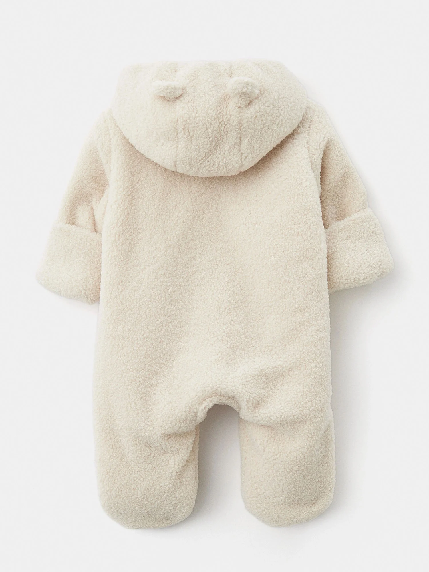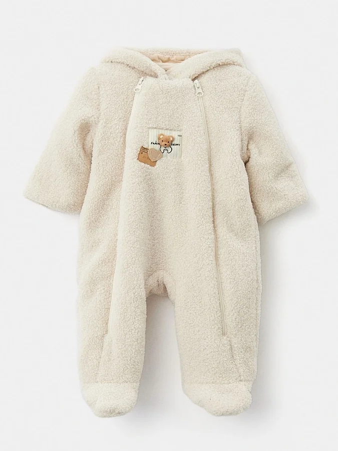 Комбинезон для малышей Бо выполнен из нежнейшего пушистого экомеха, что обеспечивает максимальный комфорт. Подкладка из 100% хлопка гарантирует приятные тактильные ощущения. Он оснащен надежной удобной молнией с защитой подбородка и шеи, что делает его использование безопасным. Продуманные рукавички-отвороты обеспечивают дополнительное тепло.Ткань отличается долговечностью: она долго сохраняет форму, цвет и не скатывается. Также у комбинезона присутствует капюшон с милыми ушками, который добавляет модели очарования.