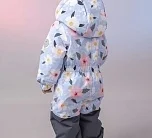 Мягкая подкладка из ворсового трикотажа в капюшоне и верхней части изделия дарит уют, а гладкая нижняя часть облегчает надевание и снятие комбинезона. Эргономичный крой обеспечивает свободу движений и отличную посадку. Длинная молния, смещённая в ножку, делает модель особенно удобной в использовании, а продуманная система защиты от поддува повышает комфорт в ветреную погоду.