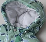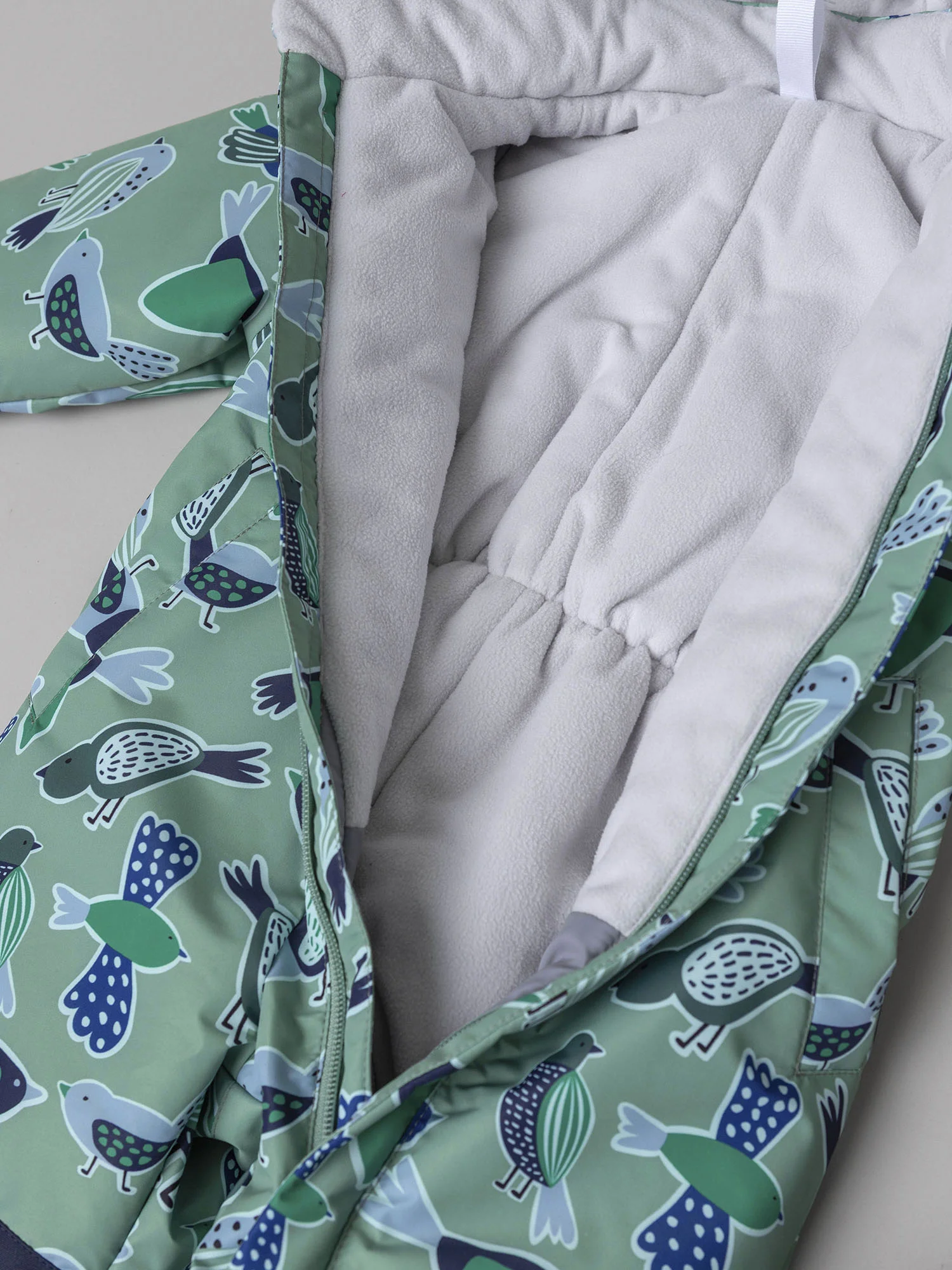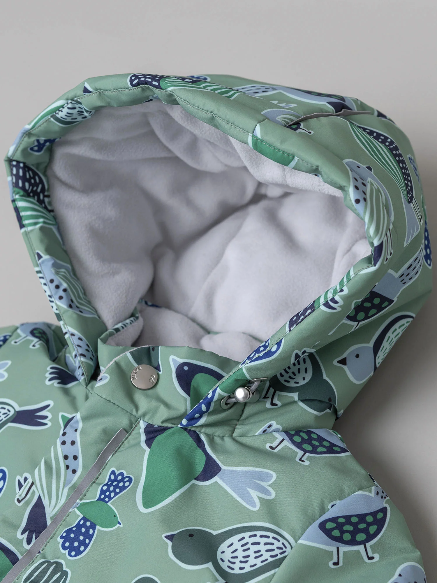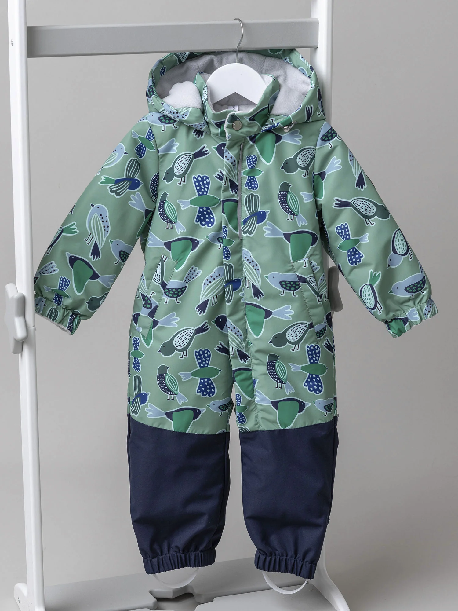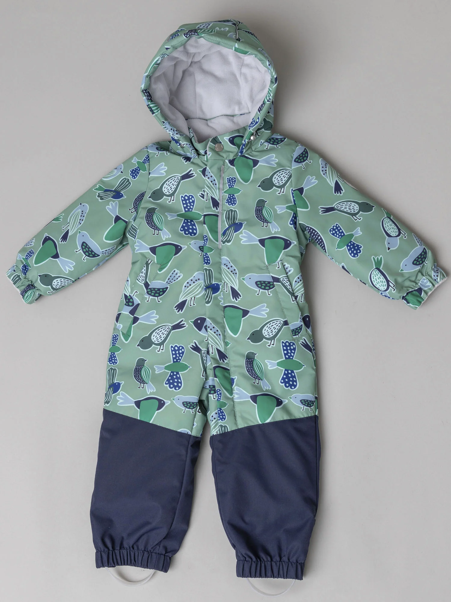 Мягкая подкладка из ворсового трикотажа в капюшоне и верхней части изделия дарит уют, а гладкая нижняя часть облегчает надевание и снятие комбинезона. Эргономичный крой обеспечивает свободу движений и отличную посадку. Длинная молния, смещённая в ножку, делает модель особенно удобной в использовании, а продуманная система защиты от поддува повышает комфорт в ветреную погоду.