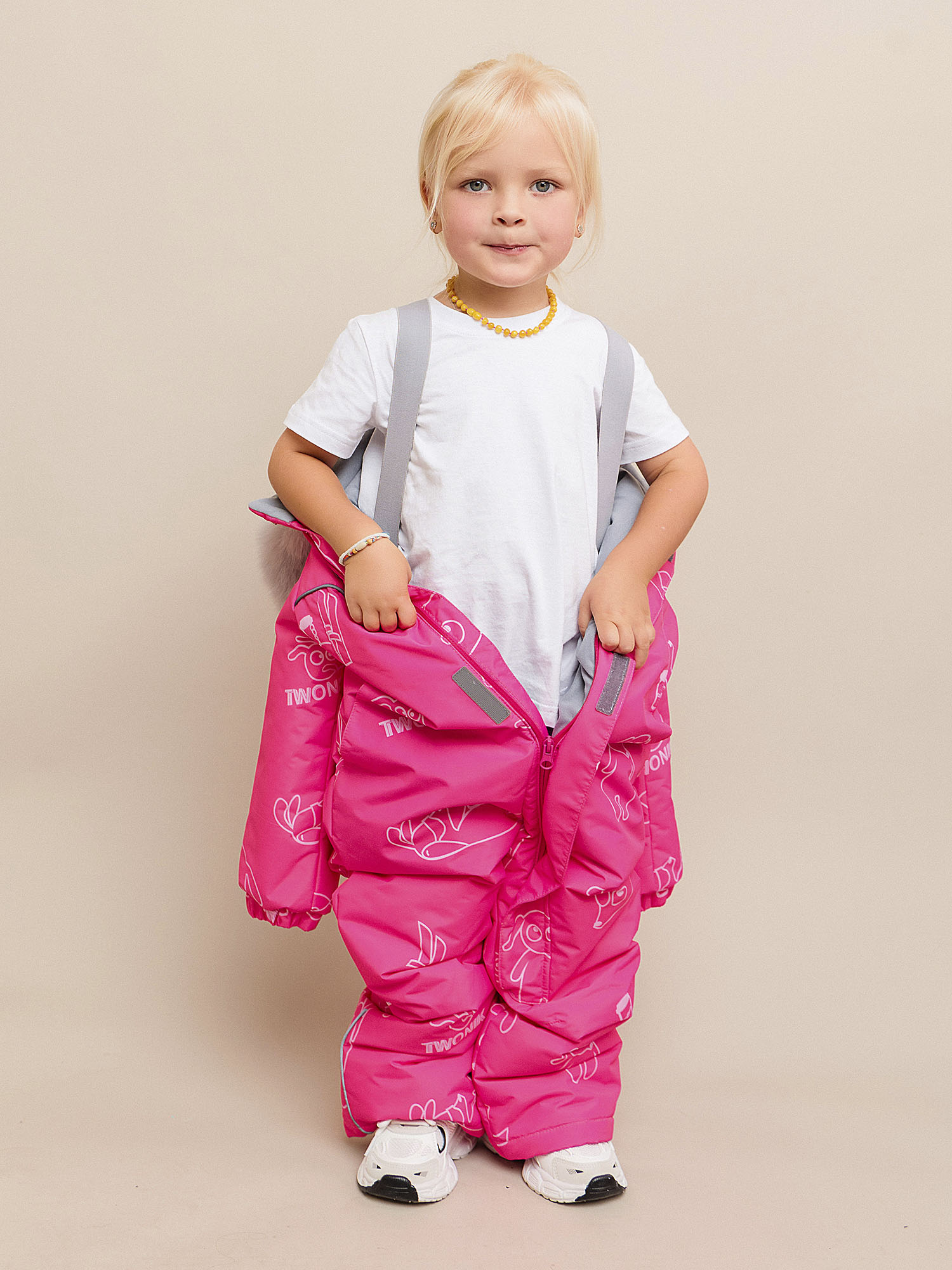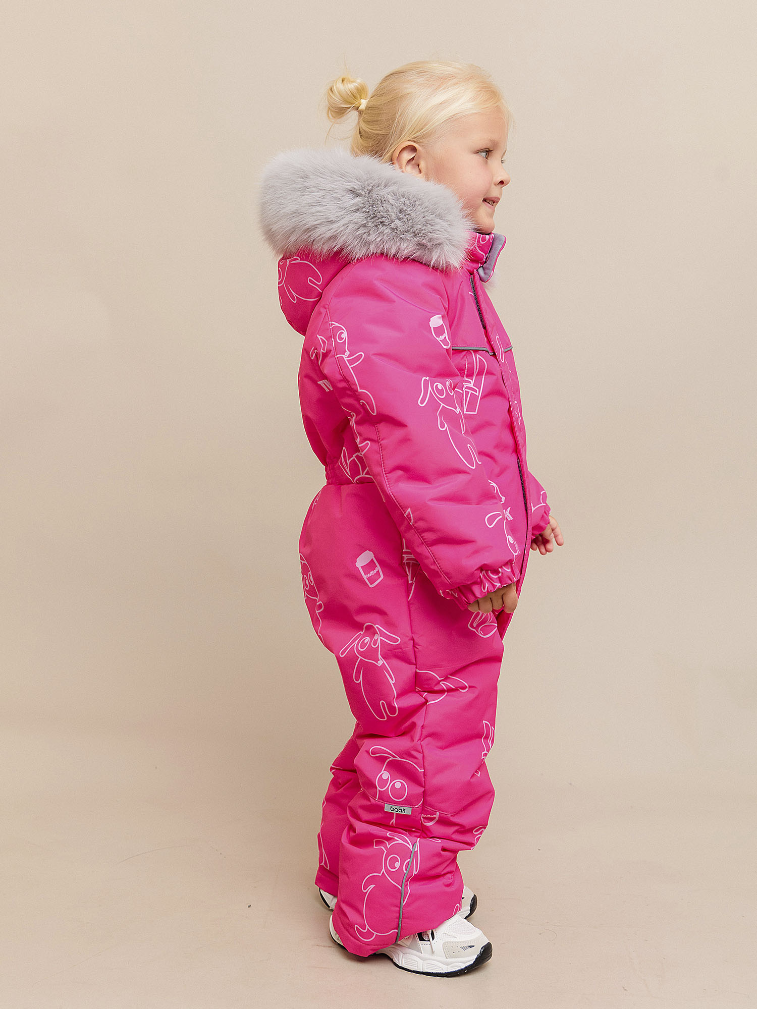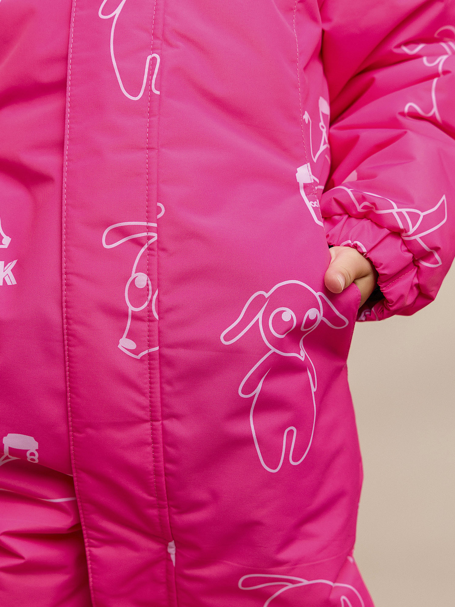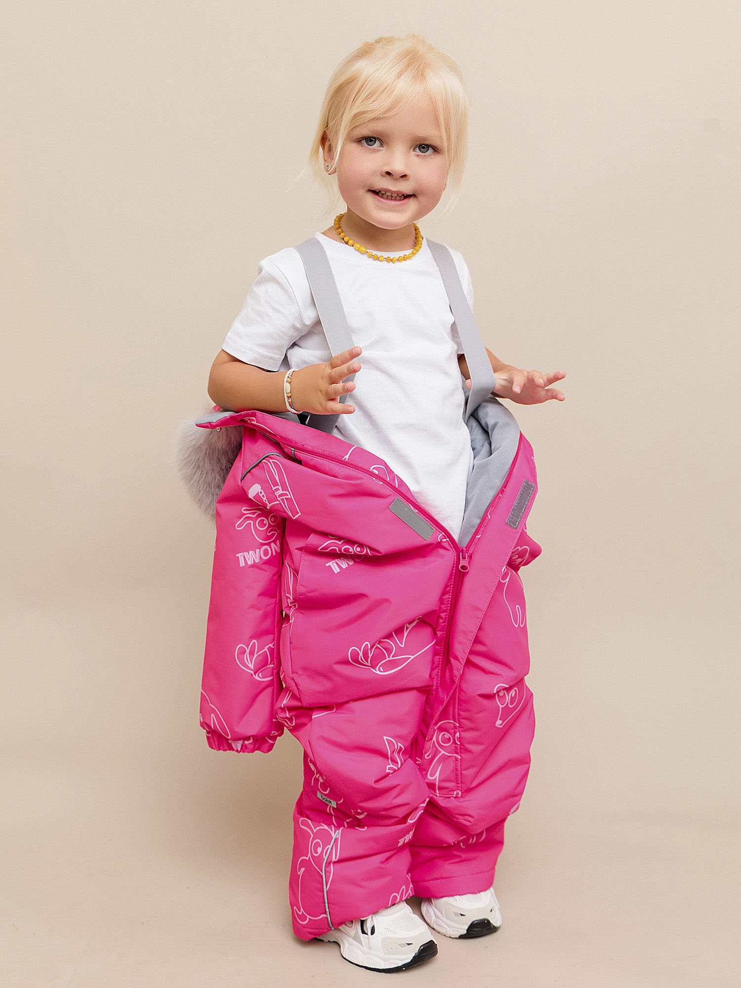 Комбинезон "Джери" в нежном розовом монохромном принте создает трогательный образ для маленьких модниц. Графичный рисунок сочетается с технологичной конструкцией для надежной зимней защиты.