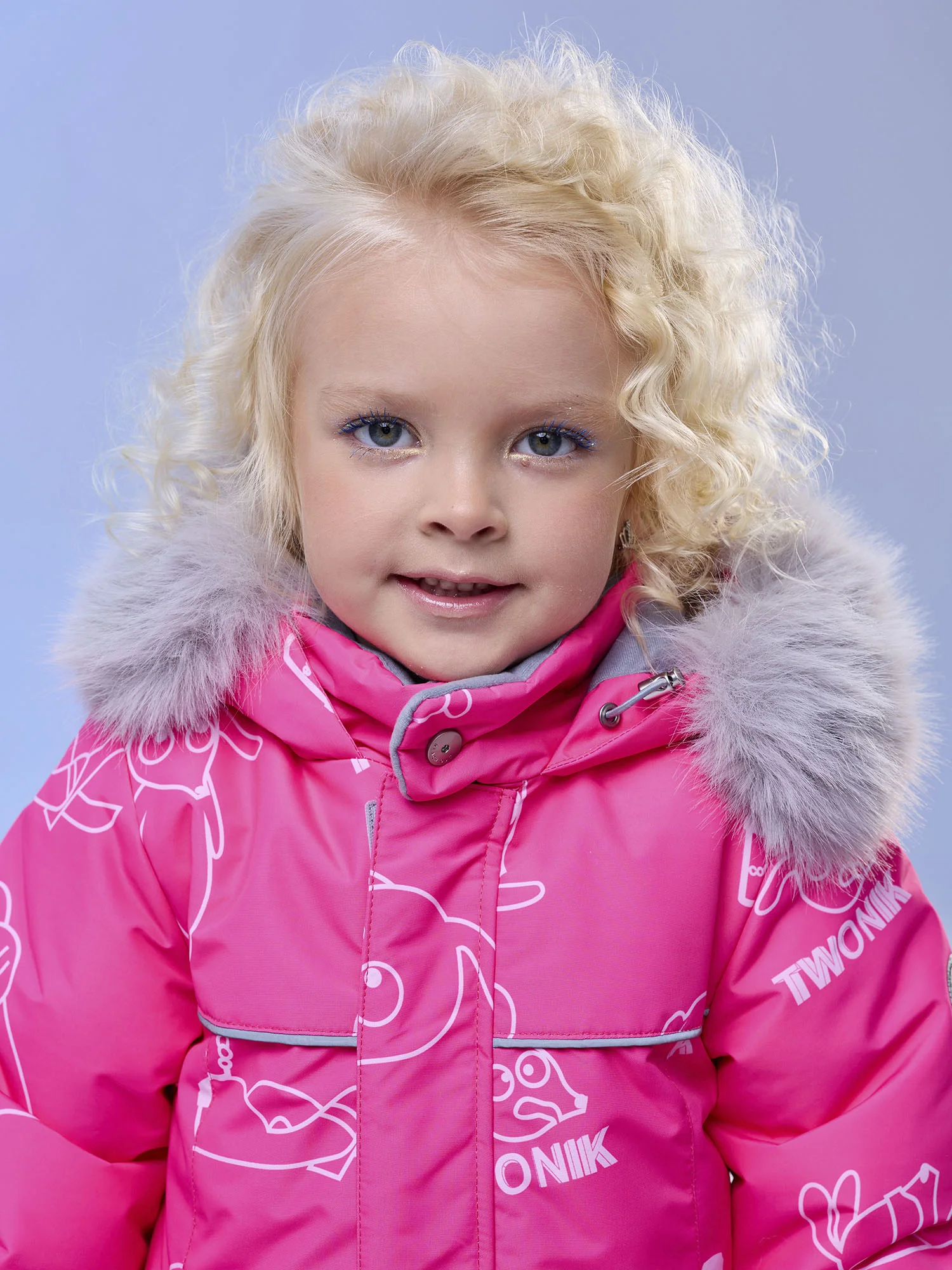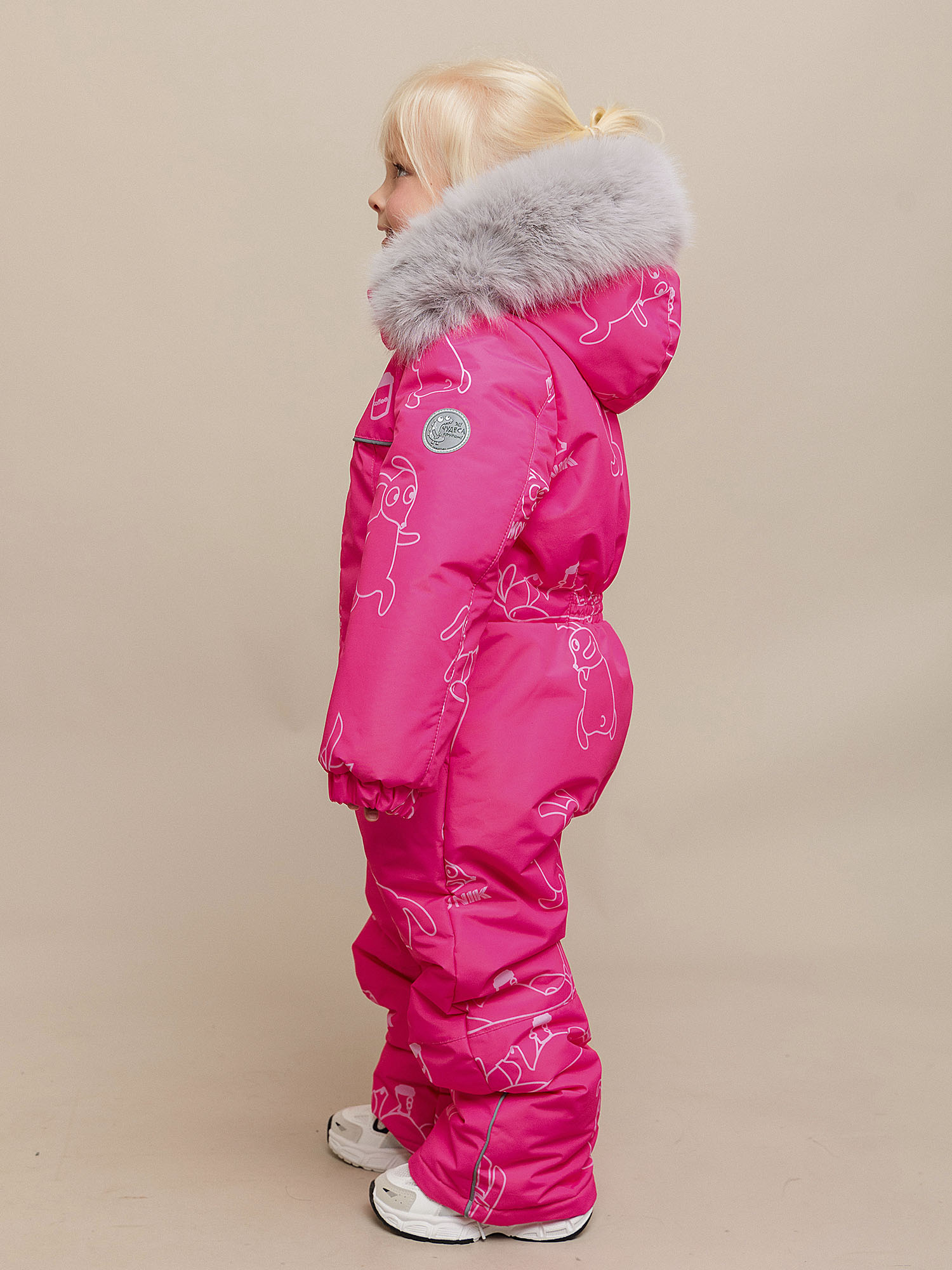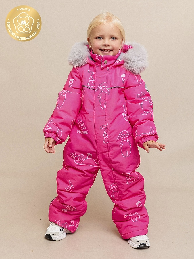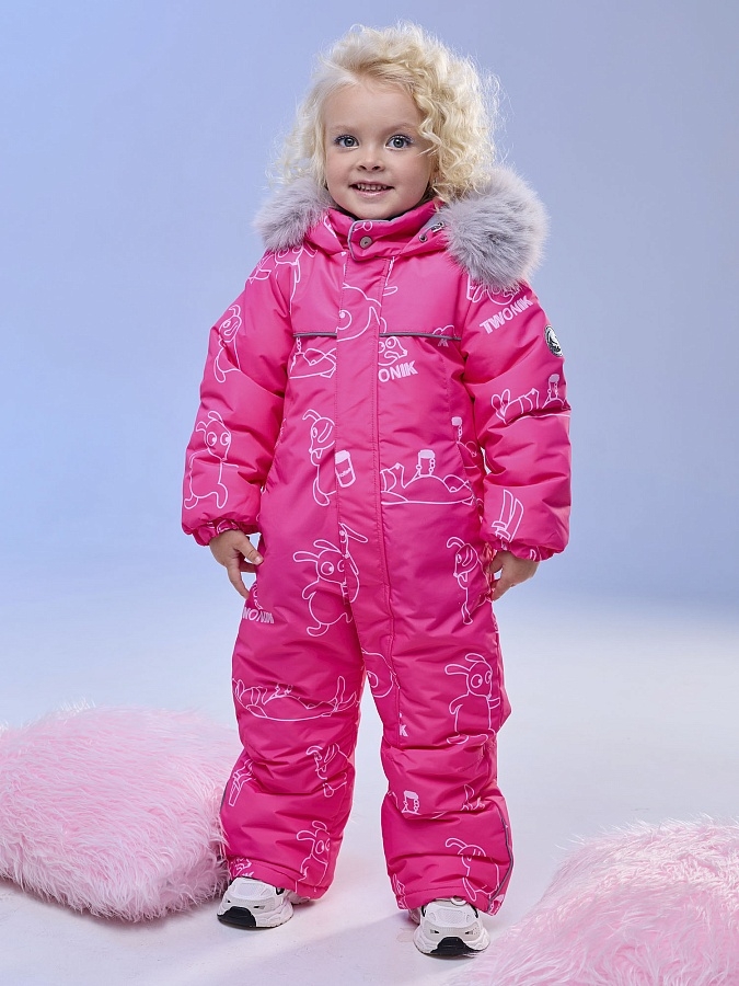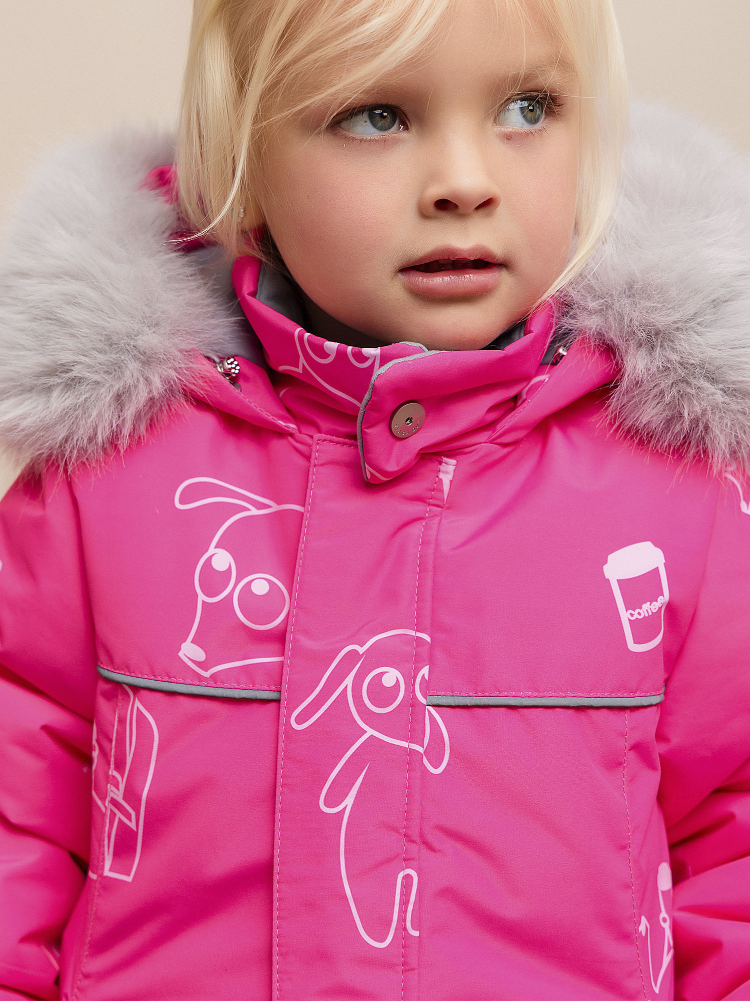 Комбинезон "Джери" в нежном розовом монохромном принте создает трогательный образ для маленьких модниц. Графичный рисунок сочетается с технологичной конструкцией для надежной зимней защиты.