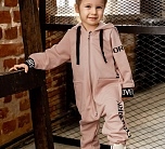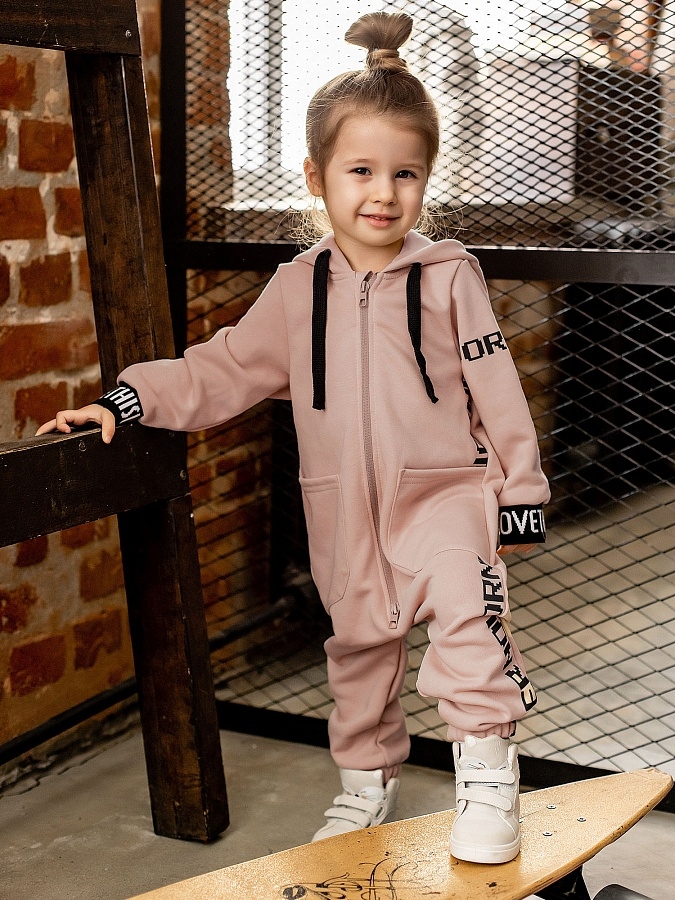 Комбинезон Баффи из футера детский на молнии. Комбинезон с капюшоном выполнен из плотного футера в молочной расцветке для девочек и мальчиков. В капюшоне имеется шнурок для утяжки. Манжеты рукавов и низ брючин на резинке. Есть карманы по бокам.