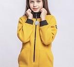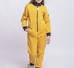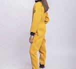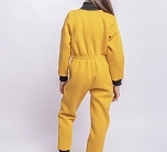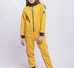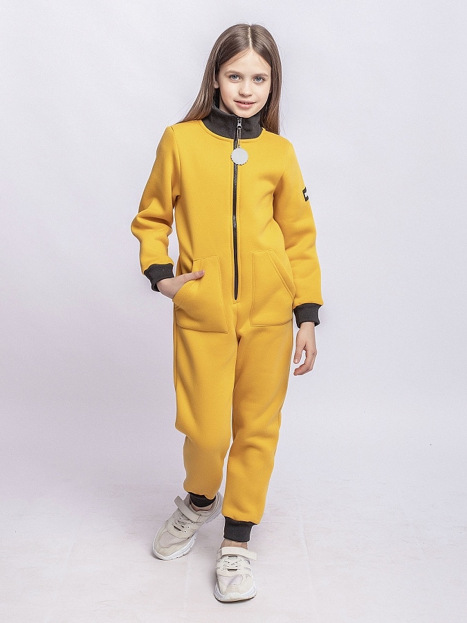 Комбинезон из футера детский Эмбер желтый с черным воротником и манжетами. Застежка-молния по центру с брелоком, высокий воротник, эластичные манжеты.