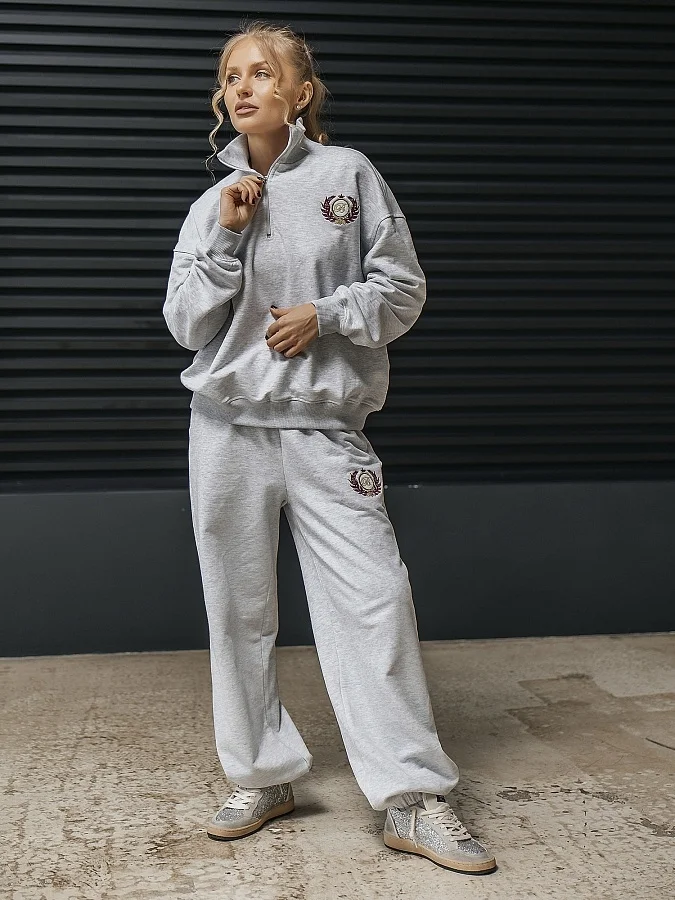 Костюм спортивный (толстовка + брюки) в цвете светло-серый меланж. Комфортная модель для повседневной носки и активного отдыха: удобный крой, мягкий материал и практичный дизайн обеспечивают свободу движений и аккуратный внешний вид.