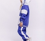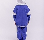 Спортивный костюм для девочки из футера бело-синий: пуловер с капюшоном и брюки на резинке.
