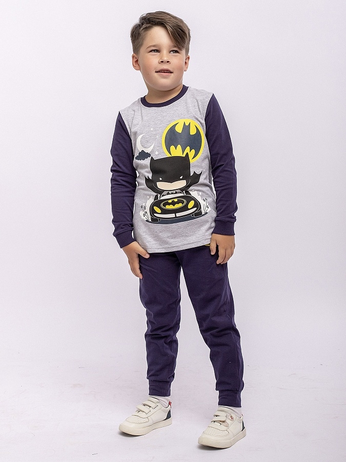 Комплект для мальчика трикотажный из коллекции Бэтмен лицензия. Футболка с длинным рукавом и брюки.