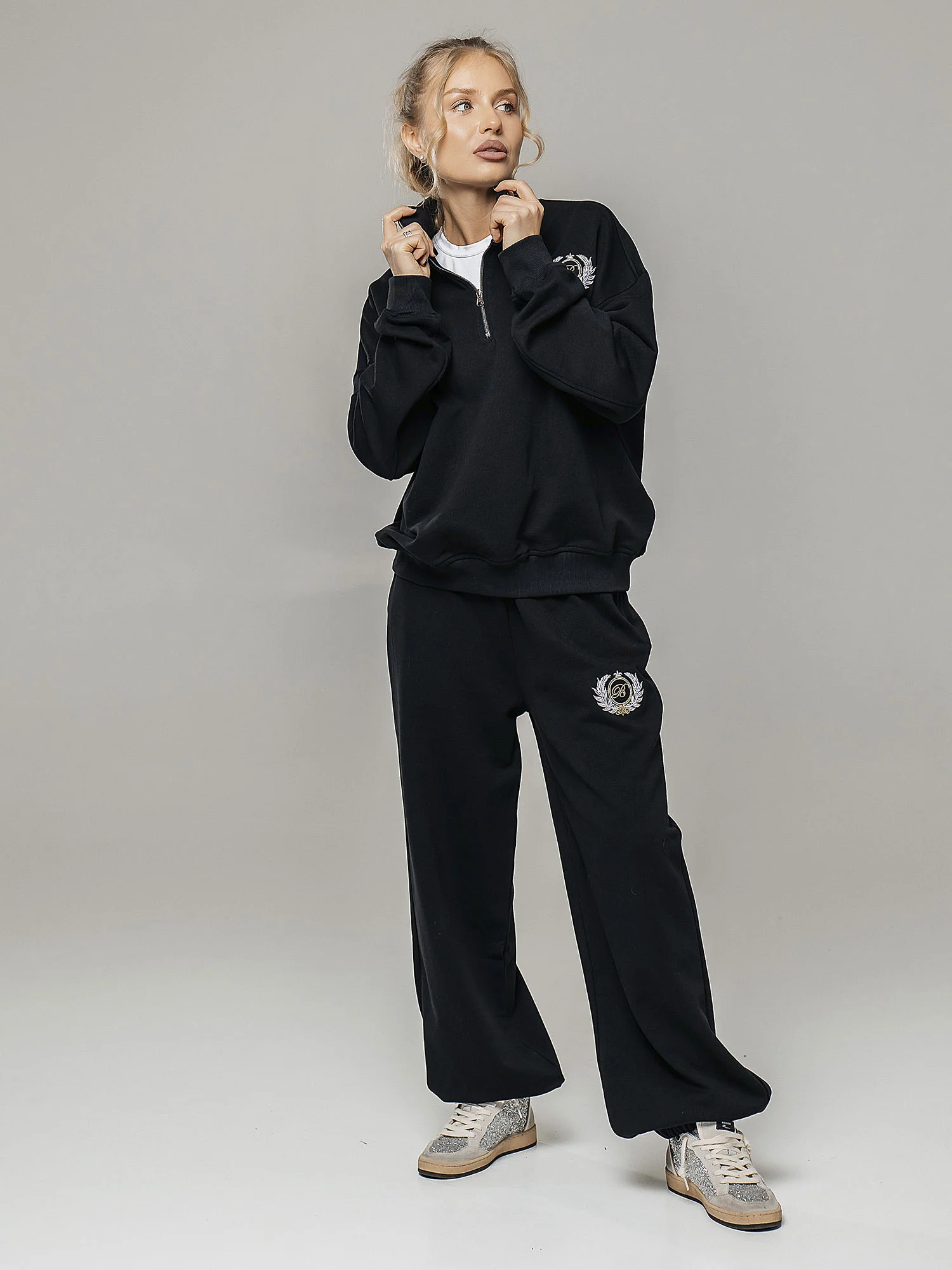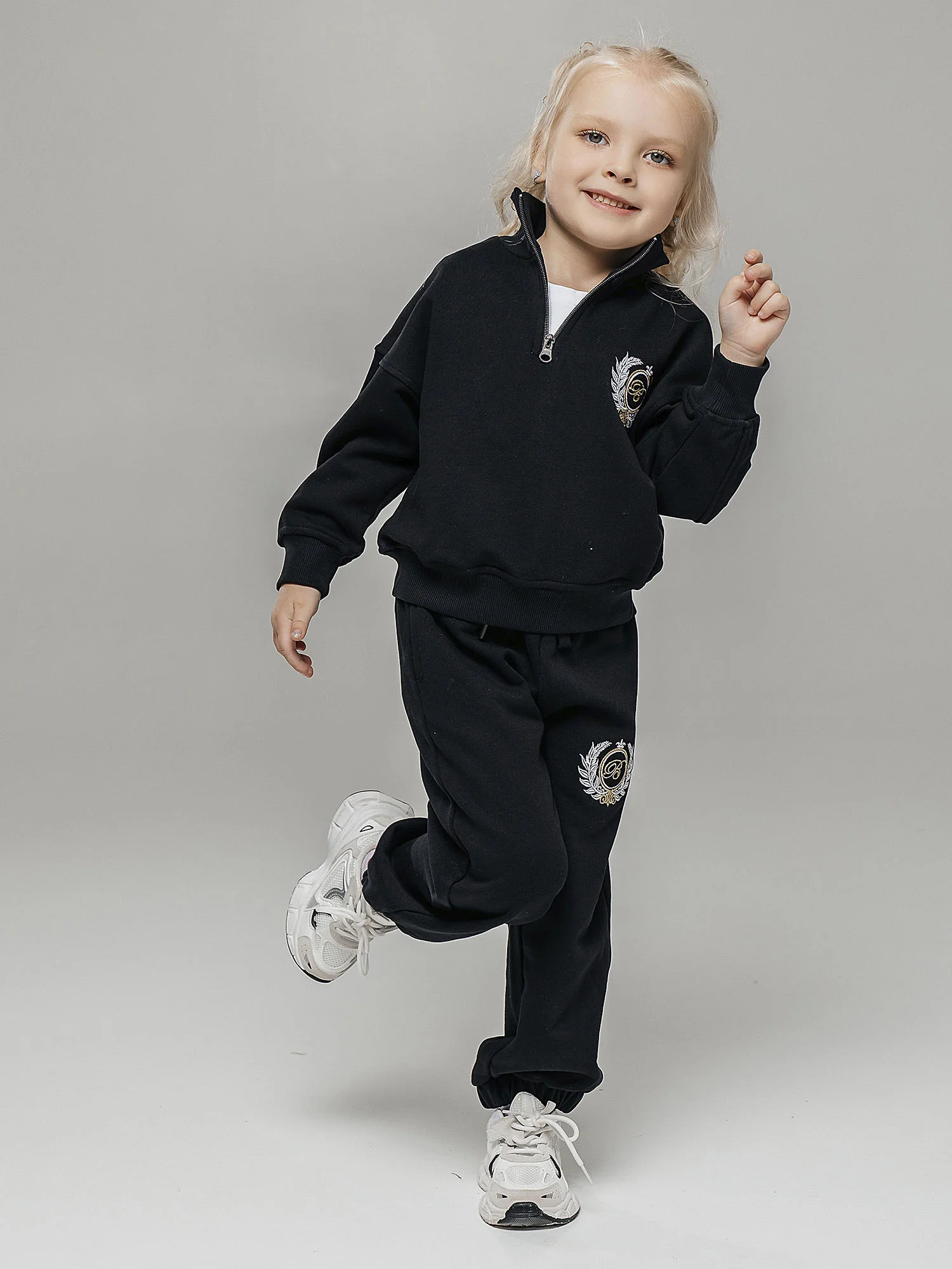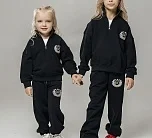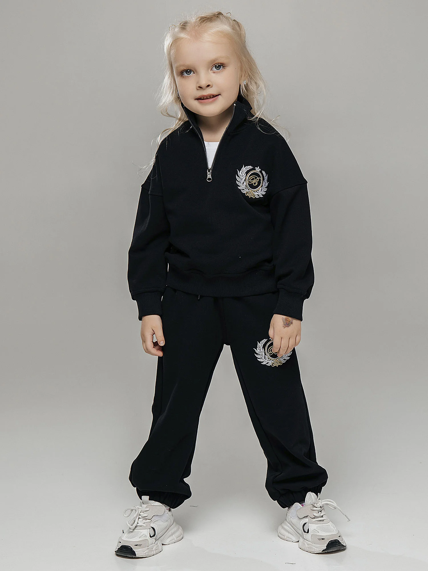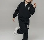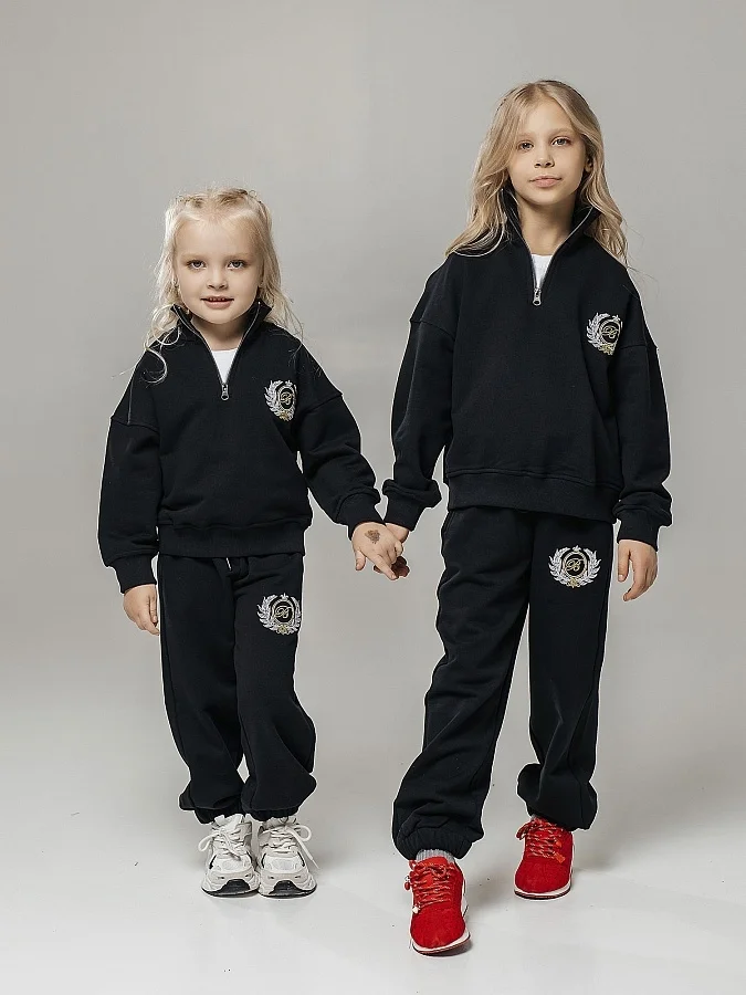 Костюм спортивный (толстовка + брюки) в черном цвете. Комфортная модель для повседневной носки и активного отдыха: удобный крой, мягкий материал и практичный дизайн обеспечивают свободу движений и аккуратный внешний вид.