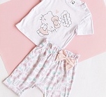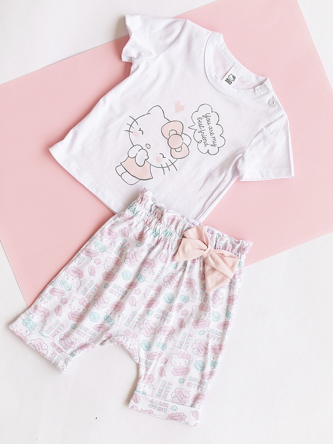 Комплект для девочки трикотажный с принтом Хелло Китти: футболка и шорты.