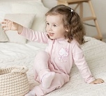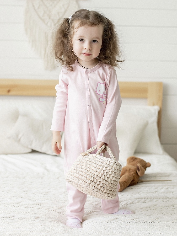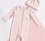 Трикотажный комплект для детей: комбинезон и шапка. Розовый цвет, принт с Хелло Китти.