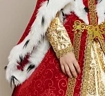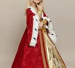 Костюм Королевы для девочки на утренник в детский сад или школу. Роскошный образ из новой коллекции бренда Пуговка, который приведет всех в восторг. Нарядное и по-королевски шикарное платье из красного бархата дополняет золотая корона с камнями.