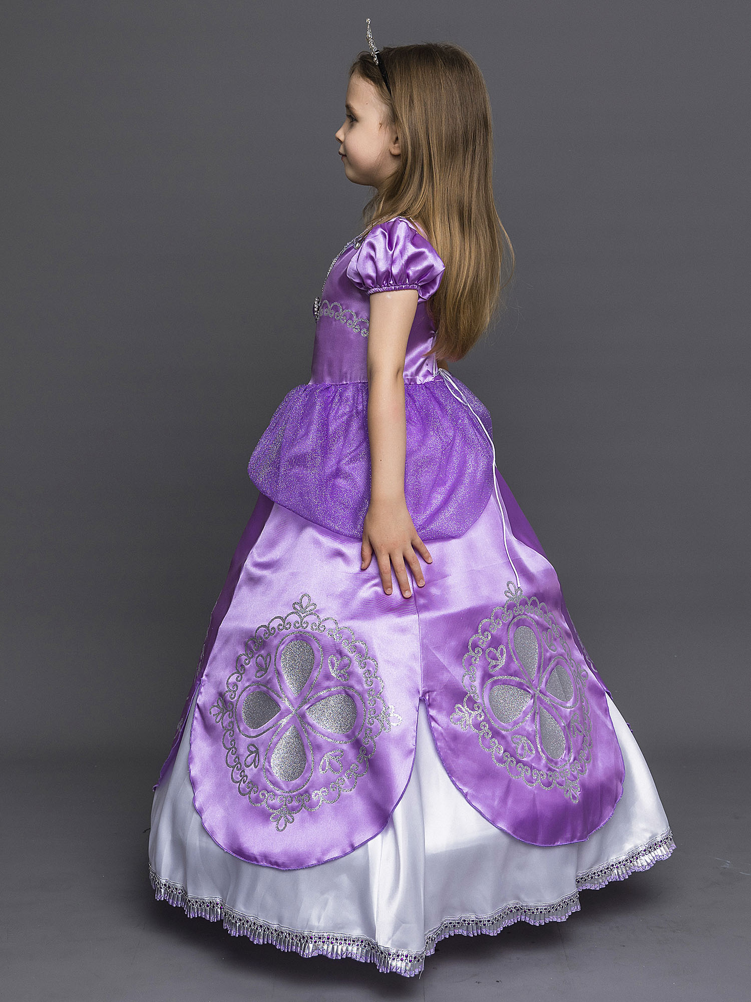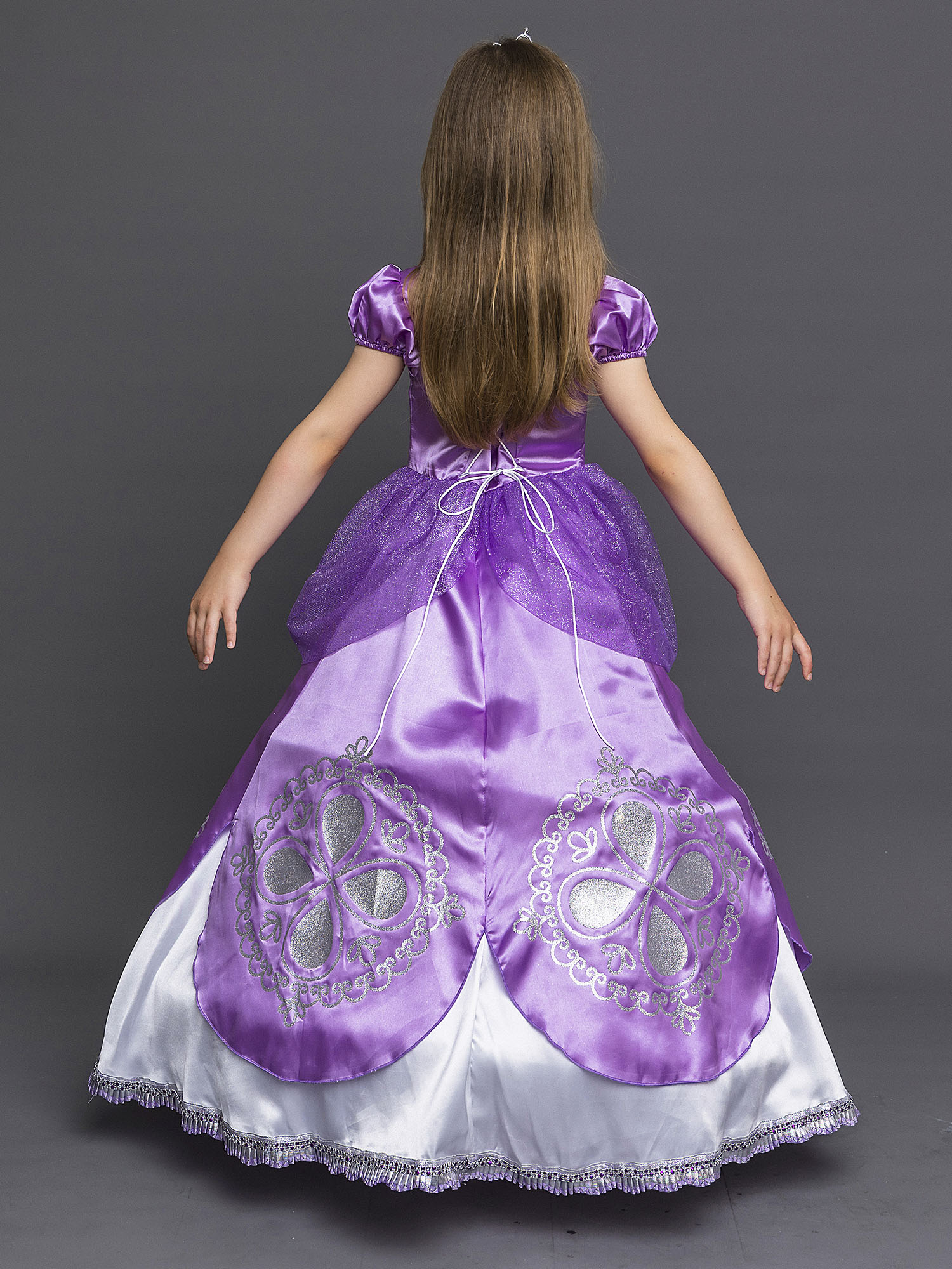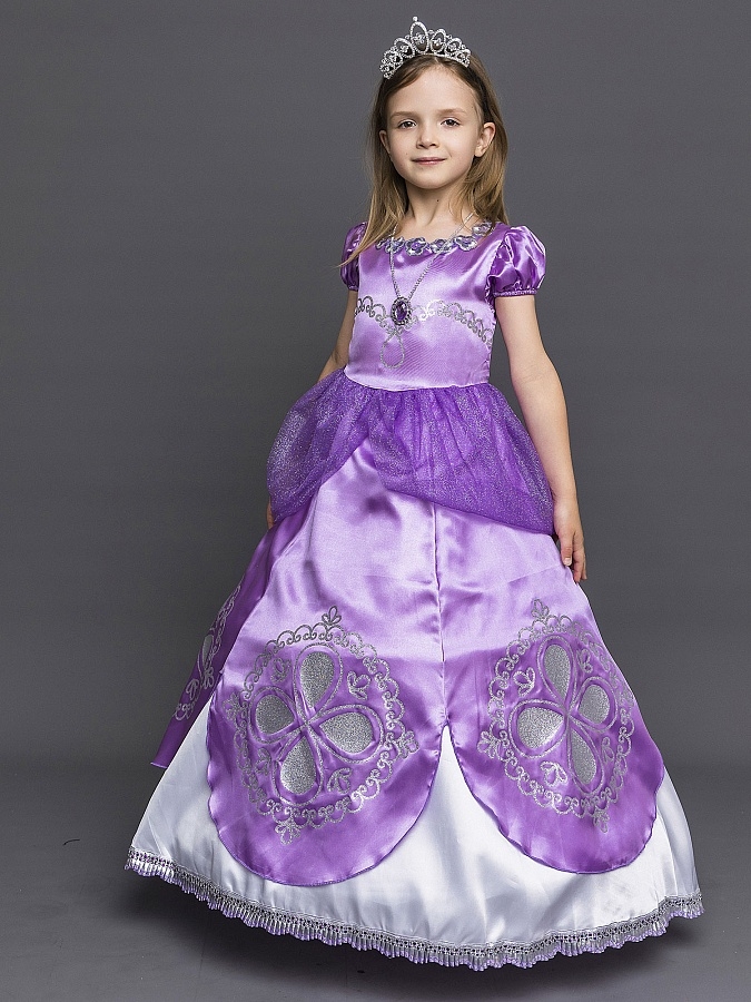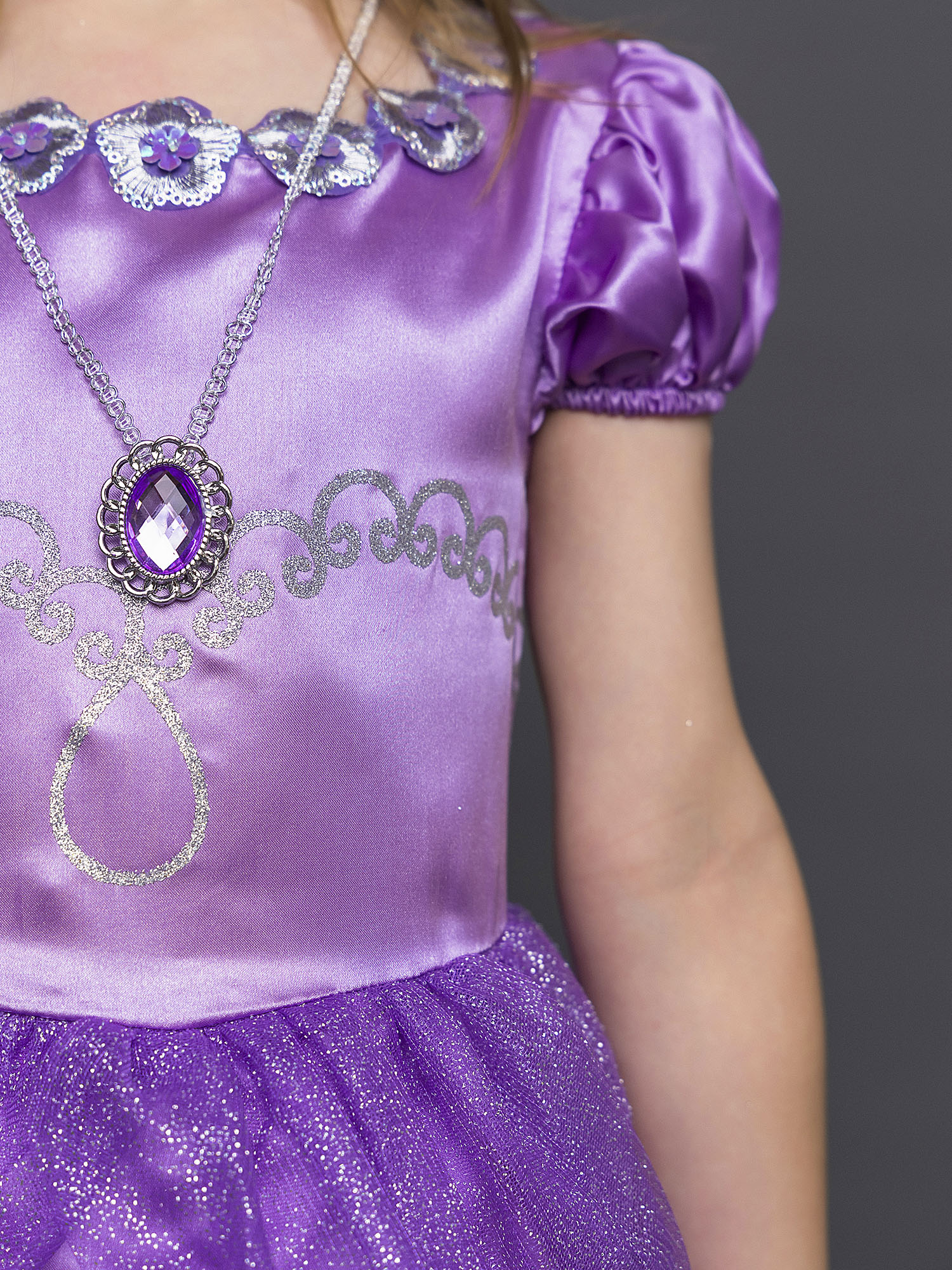 Карнавальный костюм Принцесса для девочки – волшебное воплощение любимого образа очаровательной принцессы из мультсериала. Узнаваемый и яркий образ будет актуален на самые разные праздники: Новый год, костюмированный день рождения, бал-маскарад. Комплект состоит из сиреневого платья, дополненного кулоном и диадемой.