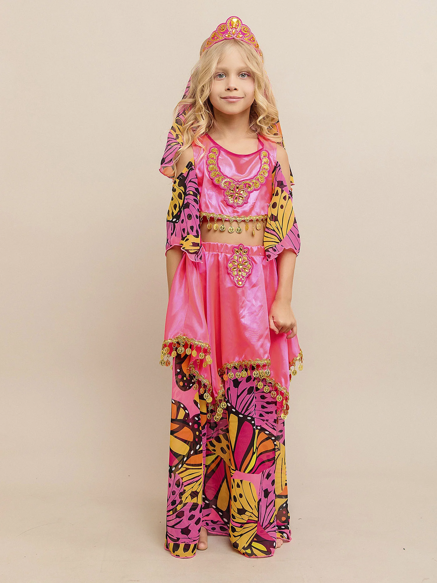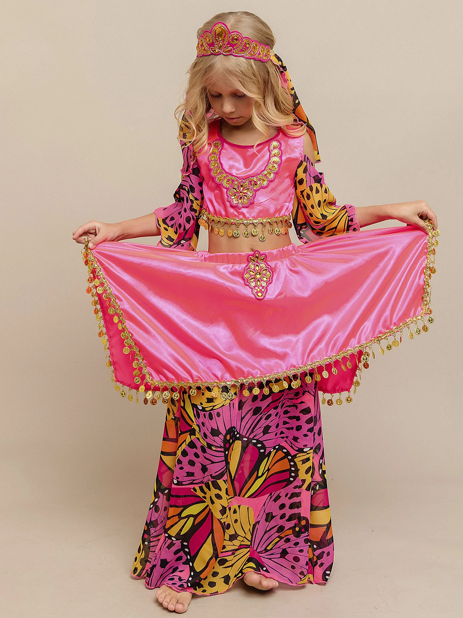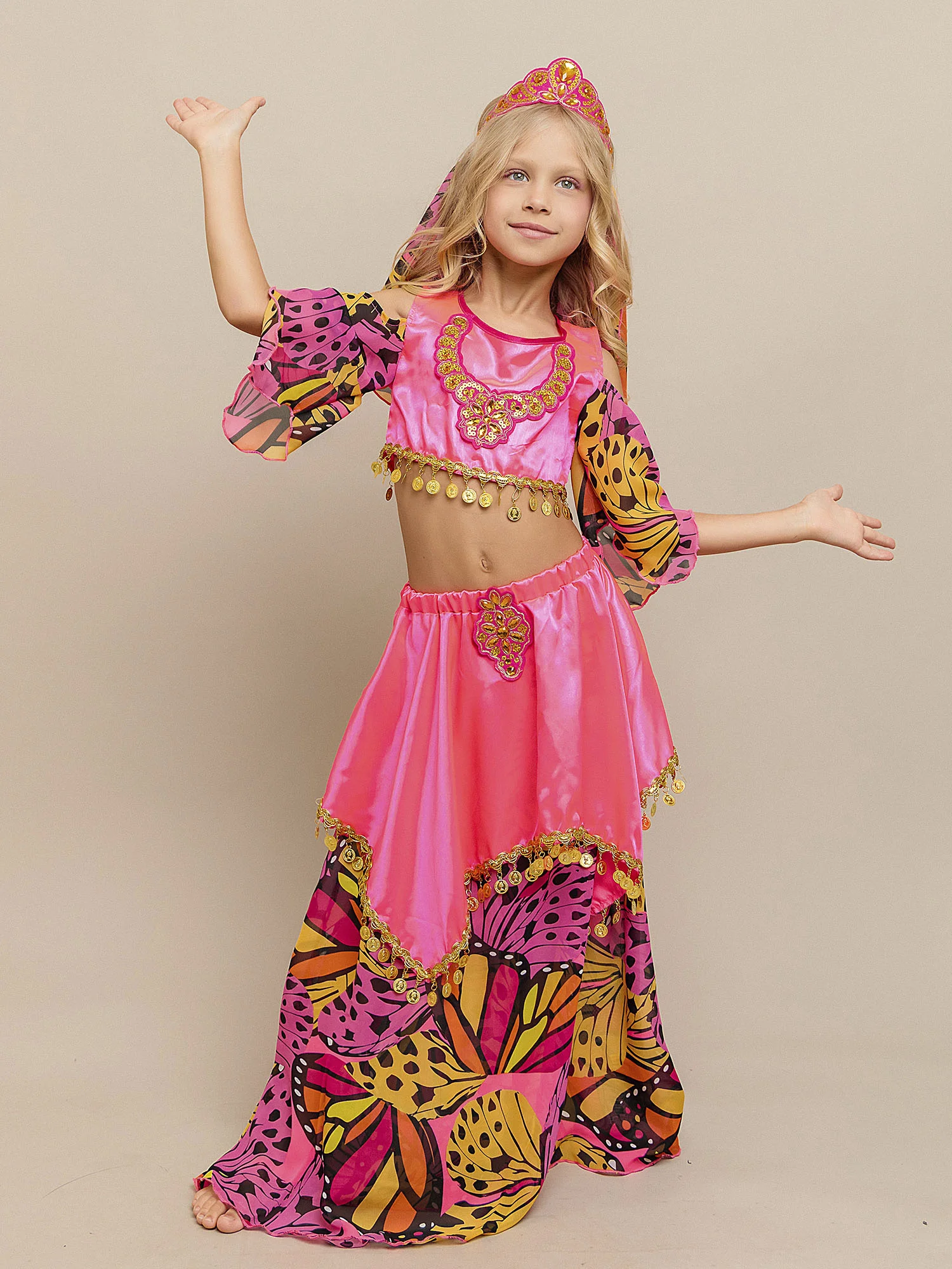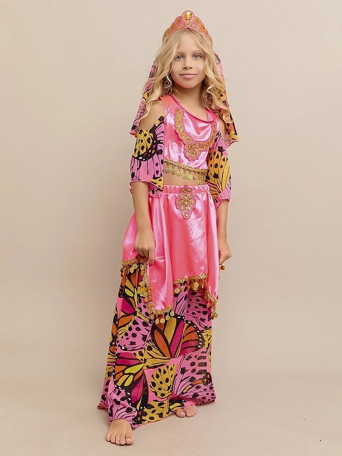 Карнавальный костюм «Шахерезада» — изящный восточный образ для праздников, утренников и сценических выступлений. В комплект входят топ, брюки и головной убор, выполненные из лёгкого шифона и блестящего сатина. Яркий и эффектный наряд поможет ребёнку почувствовать себя настоящей героиней восточной сказки.