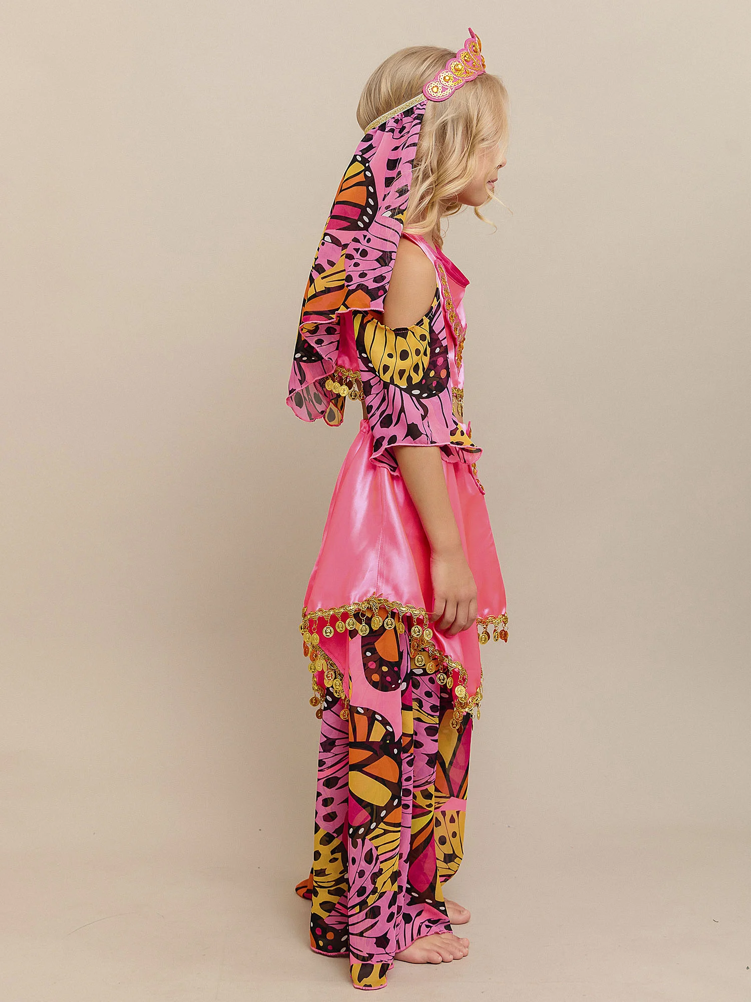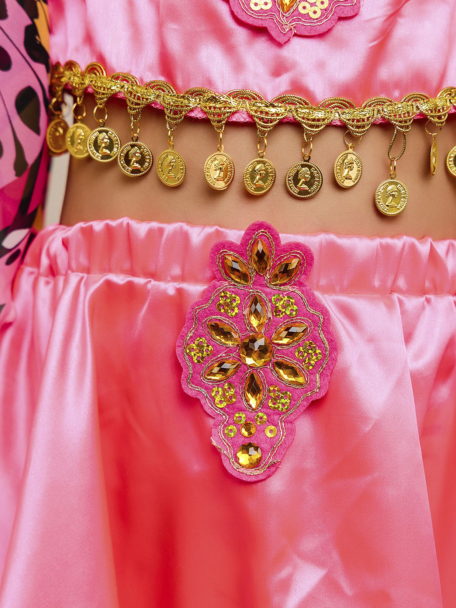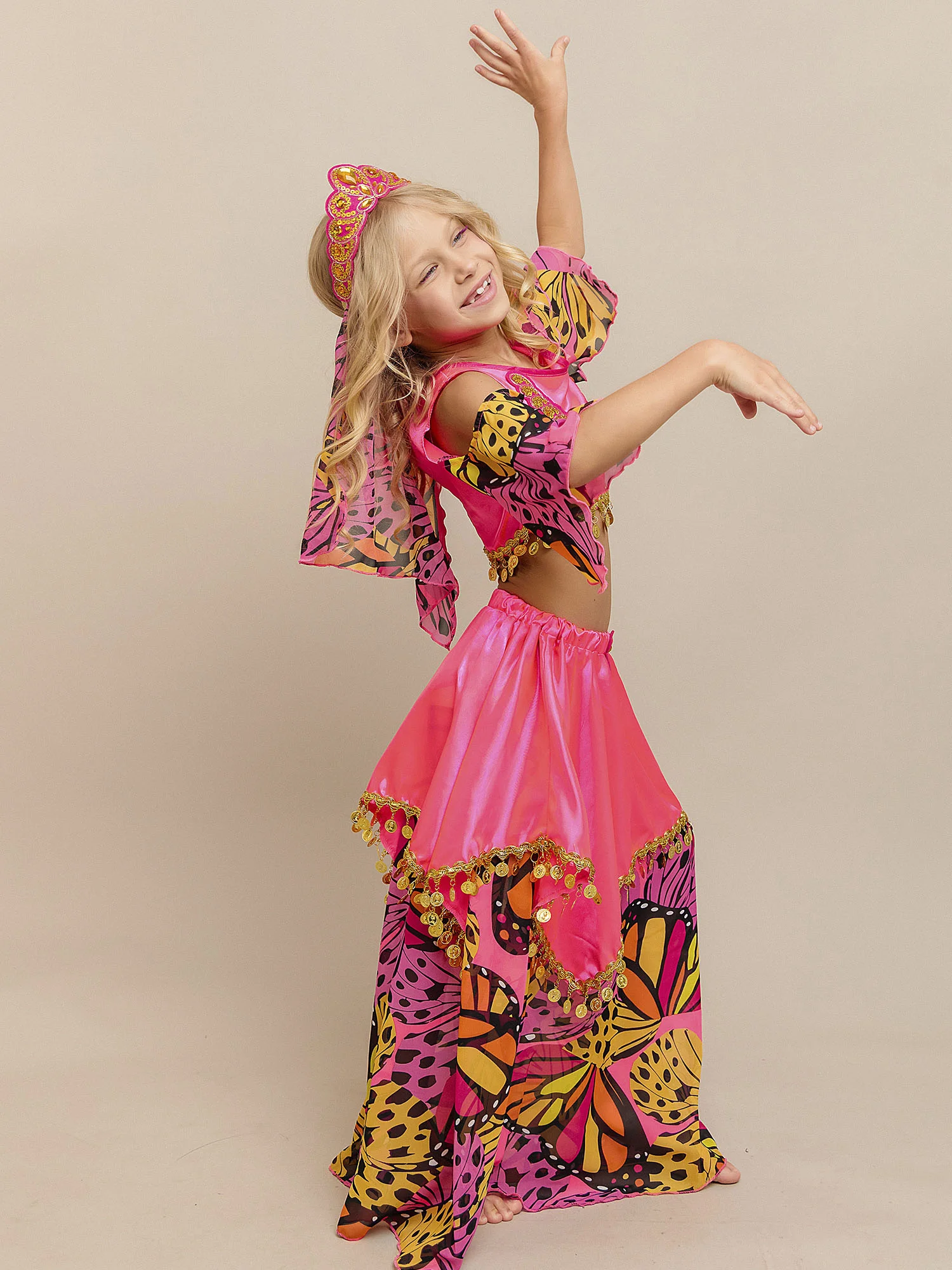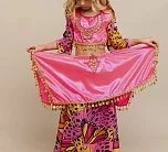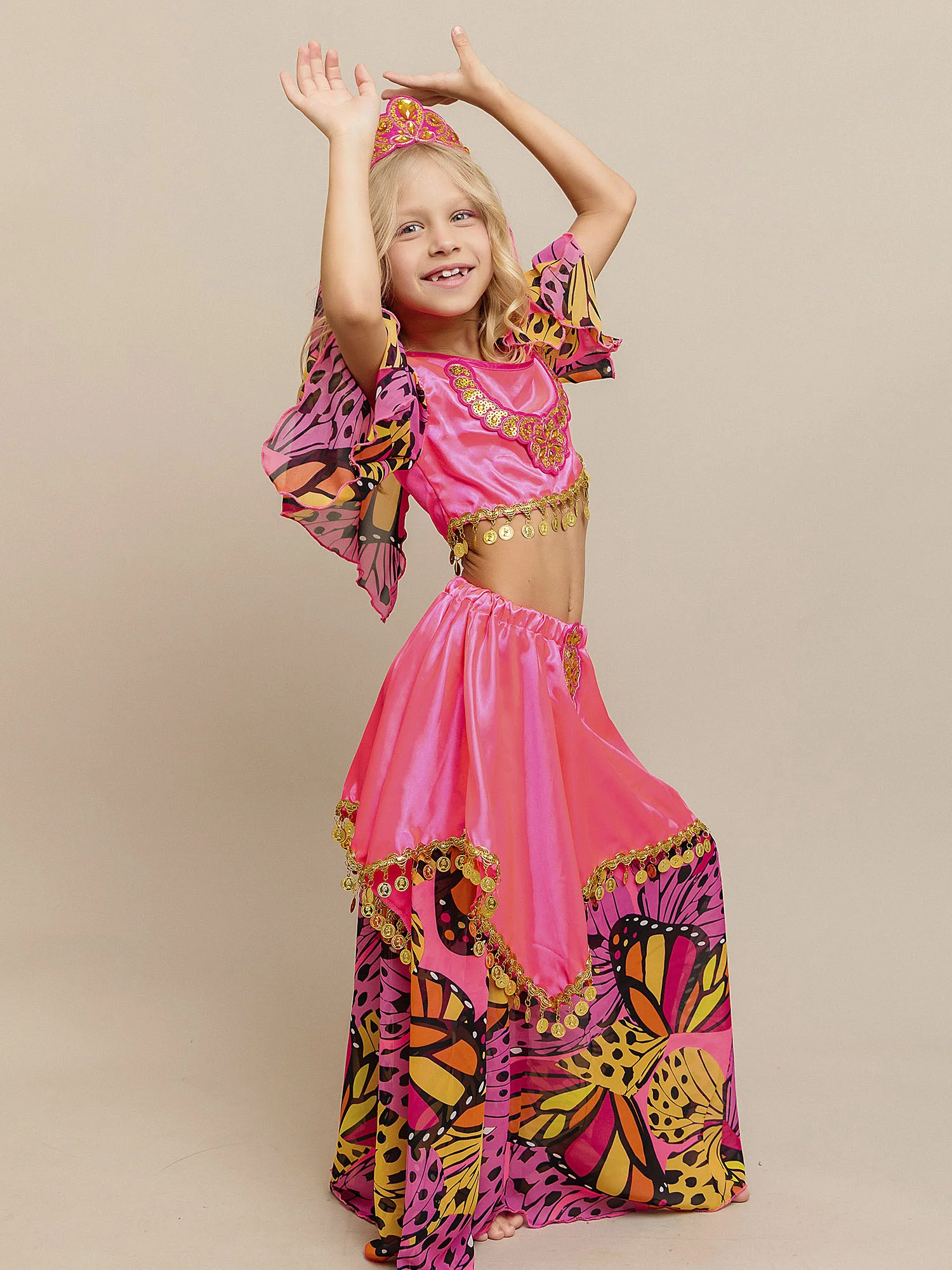 Карнавальный костюм «Шахерезада» — изящный восточный образ для праздников, утренников и сценических выступлений. В комплект входят топ, брюки и головной убор, выполненные из лёгкого шифона и блестящего сатина. Яркий и эффектный наряд поможет ребёнку почувствовать себя настоящей героиней восточной сказки.