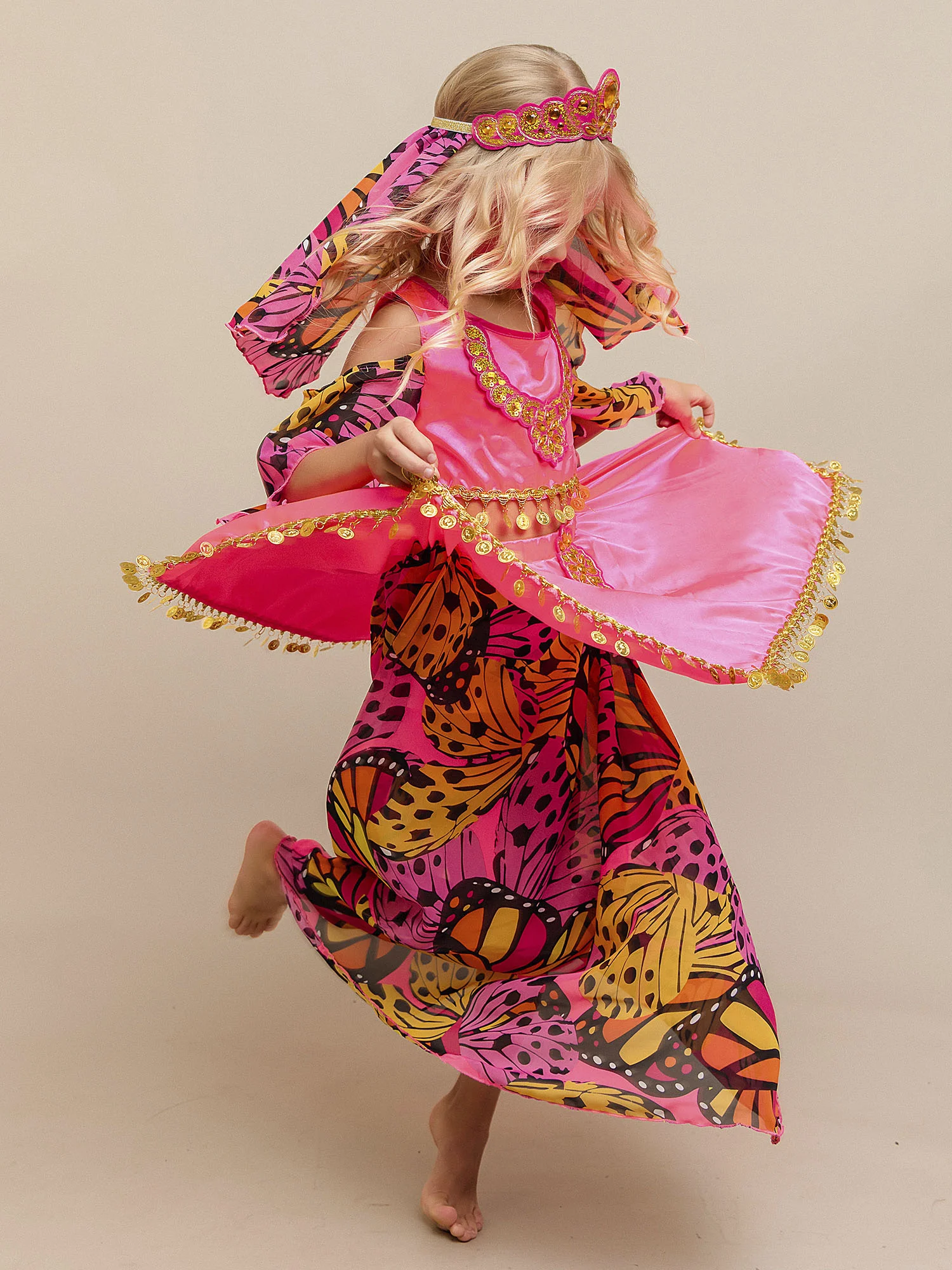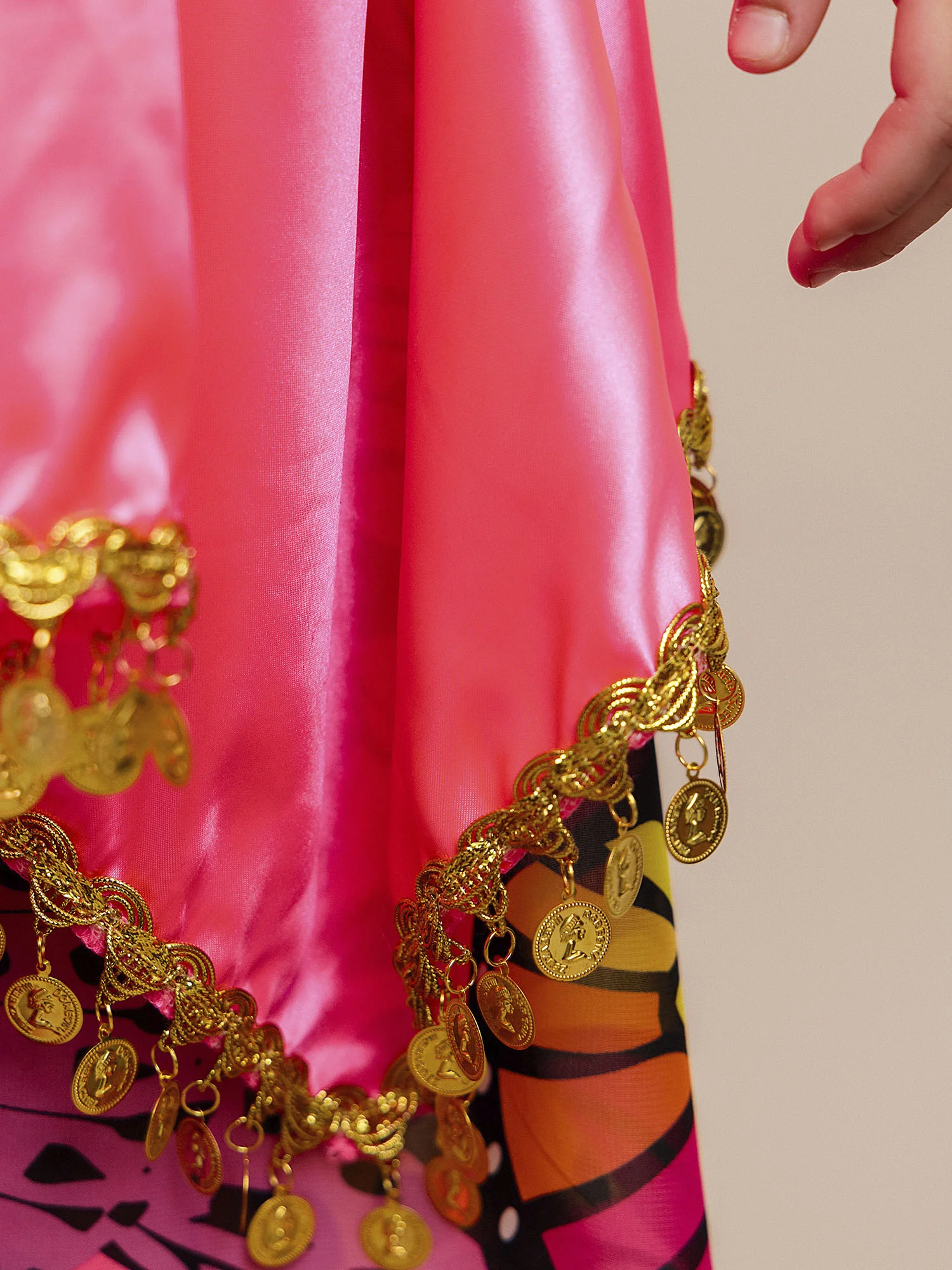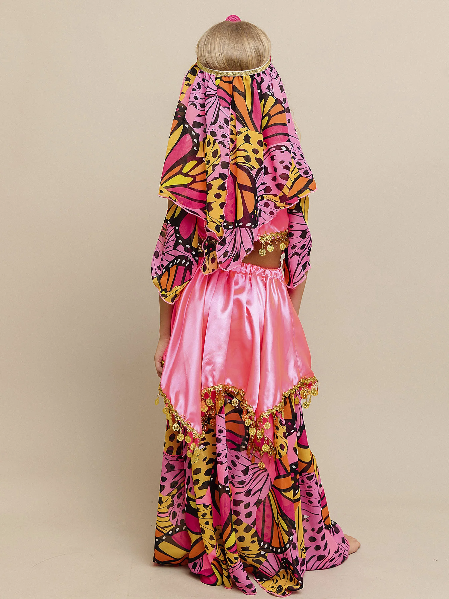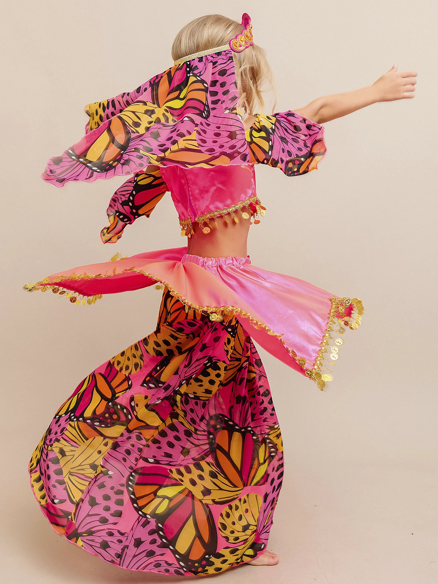 Карнавальный костюм «Шахерезада» — изящный восточный образ для праздников, утренников и сценических выступлений. В комплект входят топ, брюки и головной убор, выполненные из лёгкого шифона и блестящего сатина. Яркий и эффектный наряд поможет ребёнку почувствовать себя настоящей героиней восточной сказки.