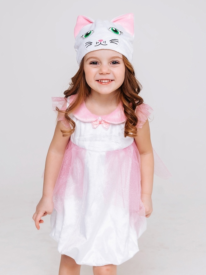 Девочки обожают кошечек, ведь они такие же красивые, нежные и добрые. Карнавальный костюм Кошка Лала представляет собой платье белого цвета с шапочкой-маской. Наряд предназначен для детей от 3 до 5 лет (см. размер). Прекрасный наряд для спектакля, елки или карнавального утренника в детском садике.