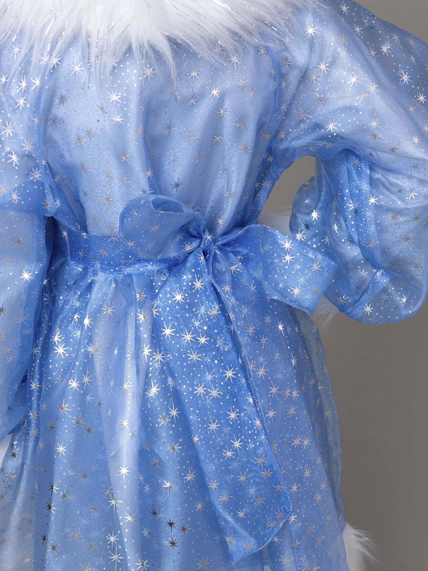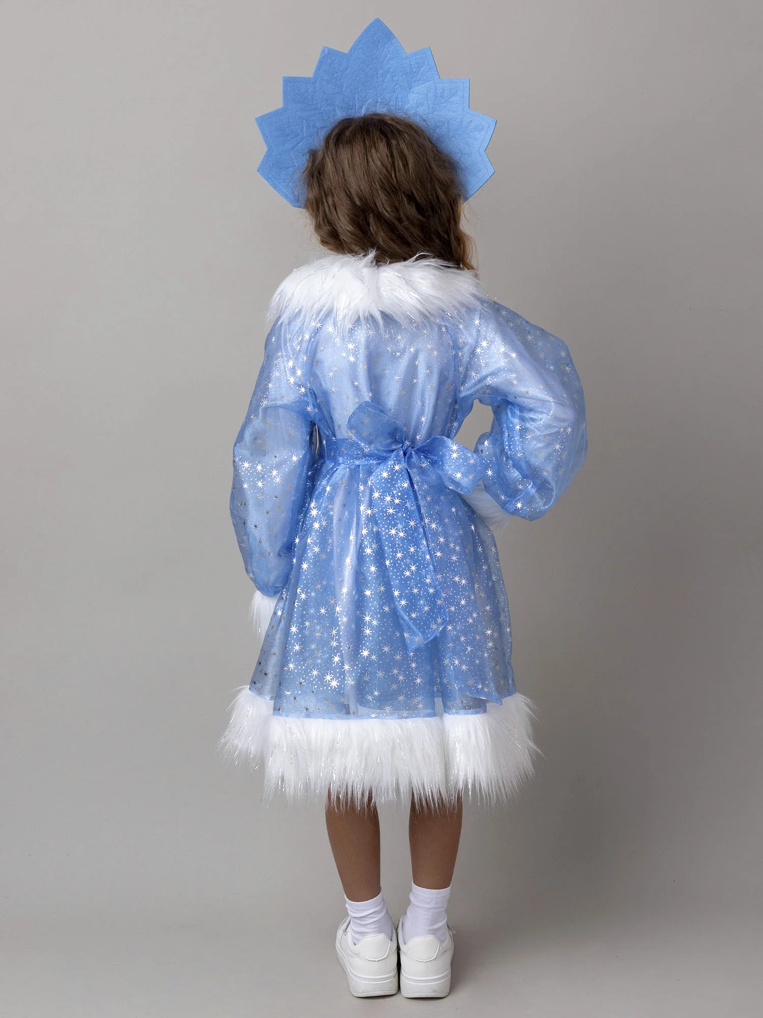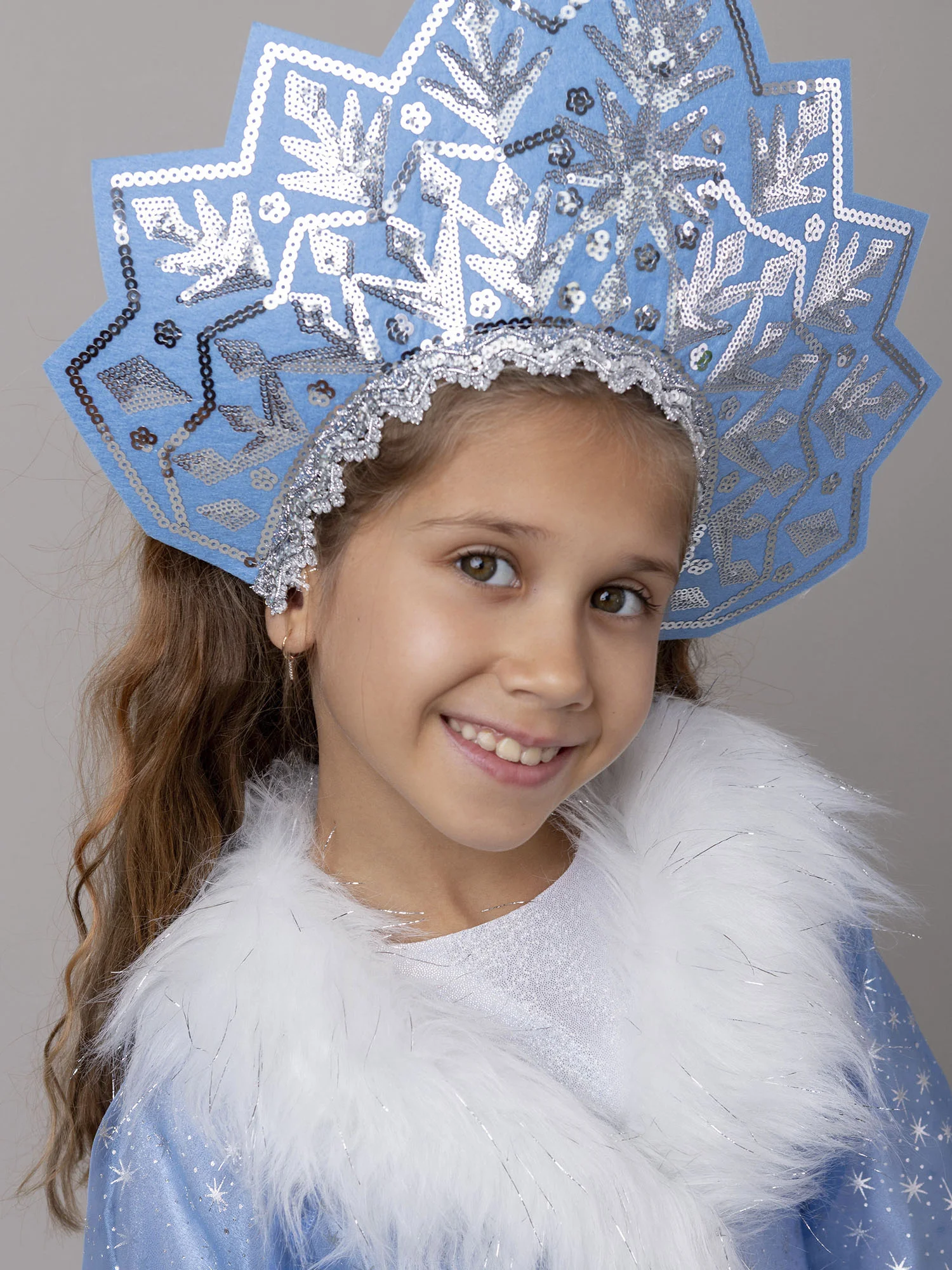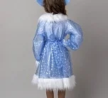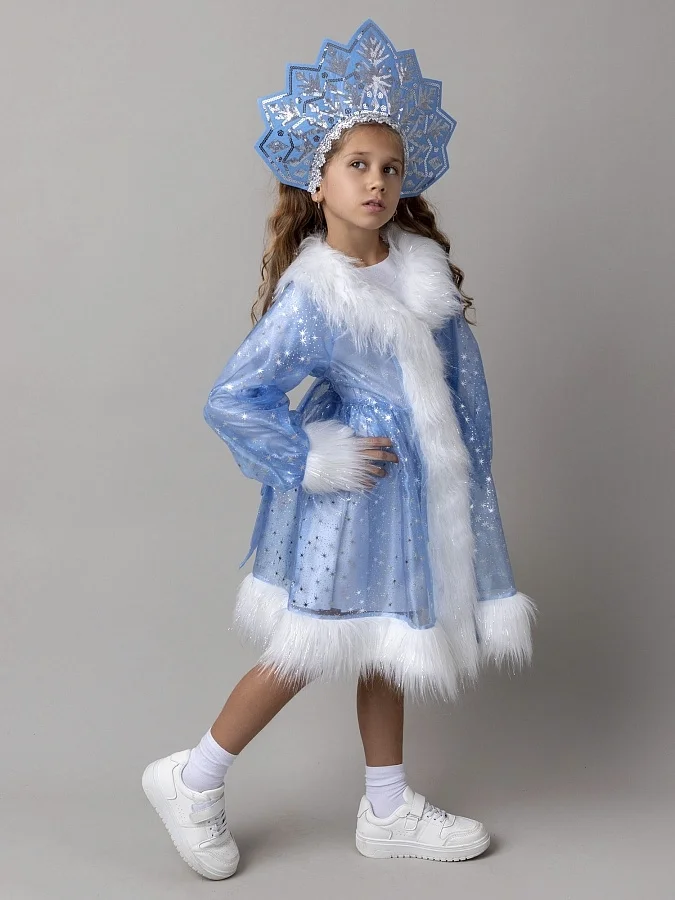 Снегурочка Катюша — нарядный новогодний костюм, сочетающий блеск и нежность. В комплекте верхнее платье из органзы с меховой отделкой, нижнее трикотажное платье и изящный кокошник с мехом. Материалы: трикотаж голограмма серебро, органза и мягкий мех. Идеален для утренников, фотосессий и праздничных выступлений.
