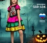 Костюм Сеньорита Катрина для девочек - разноцветный наряд в стиле мексиканского Хэллоуина. Комплект состоит из платья и ободка.