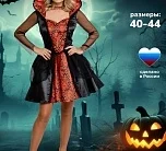Карнавальный костюм Вампирша Гелла для взрослых. В комплект входит короткое пышное платье с воротником. Воротник-стойка и длинные рукава, выполненные из черной сетки.