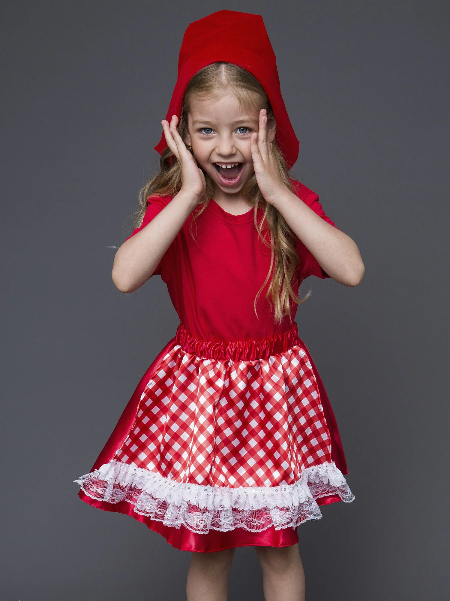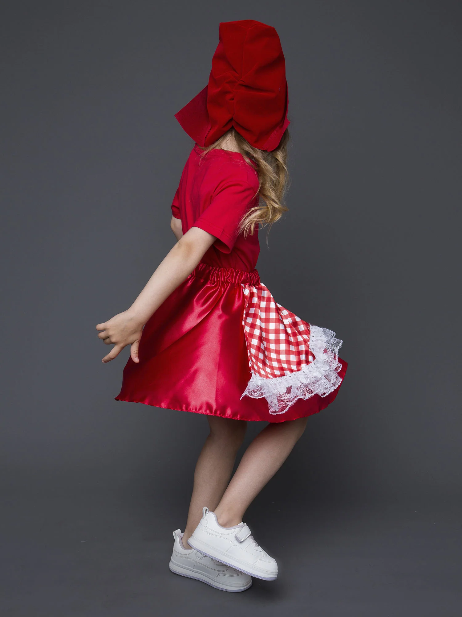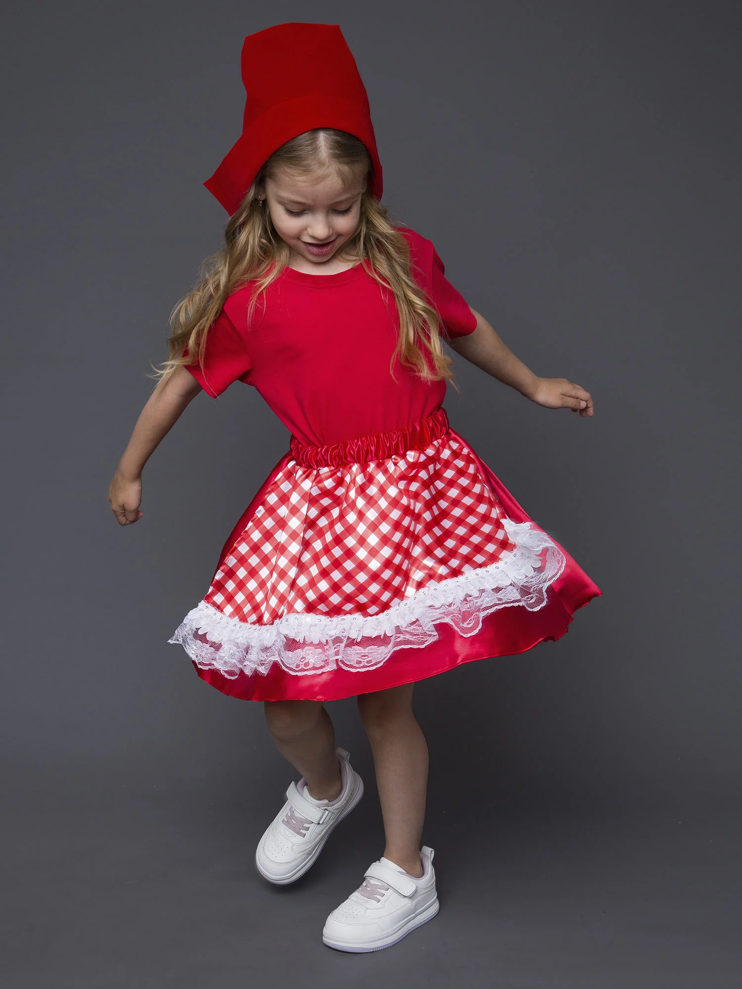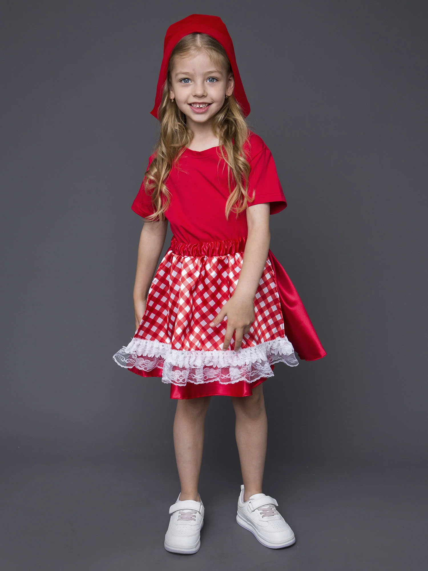 Карнавальный костюм «Красная Шапочка» — очаровательный образ для девочки. В комплект входят юбка с фартуком и фирменная красная шапочка. Лёгкий и удобный костюм идеально подойдёт для утренников, детских праздников и театральных постановок.