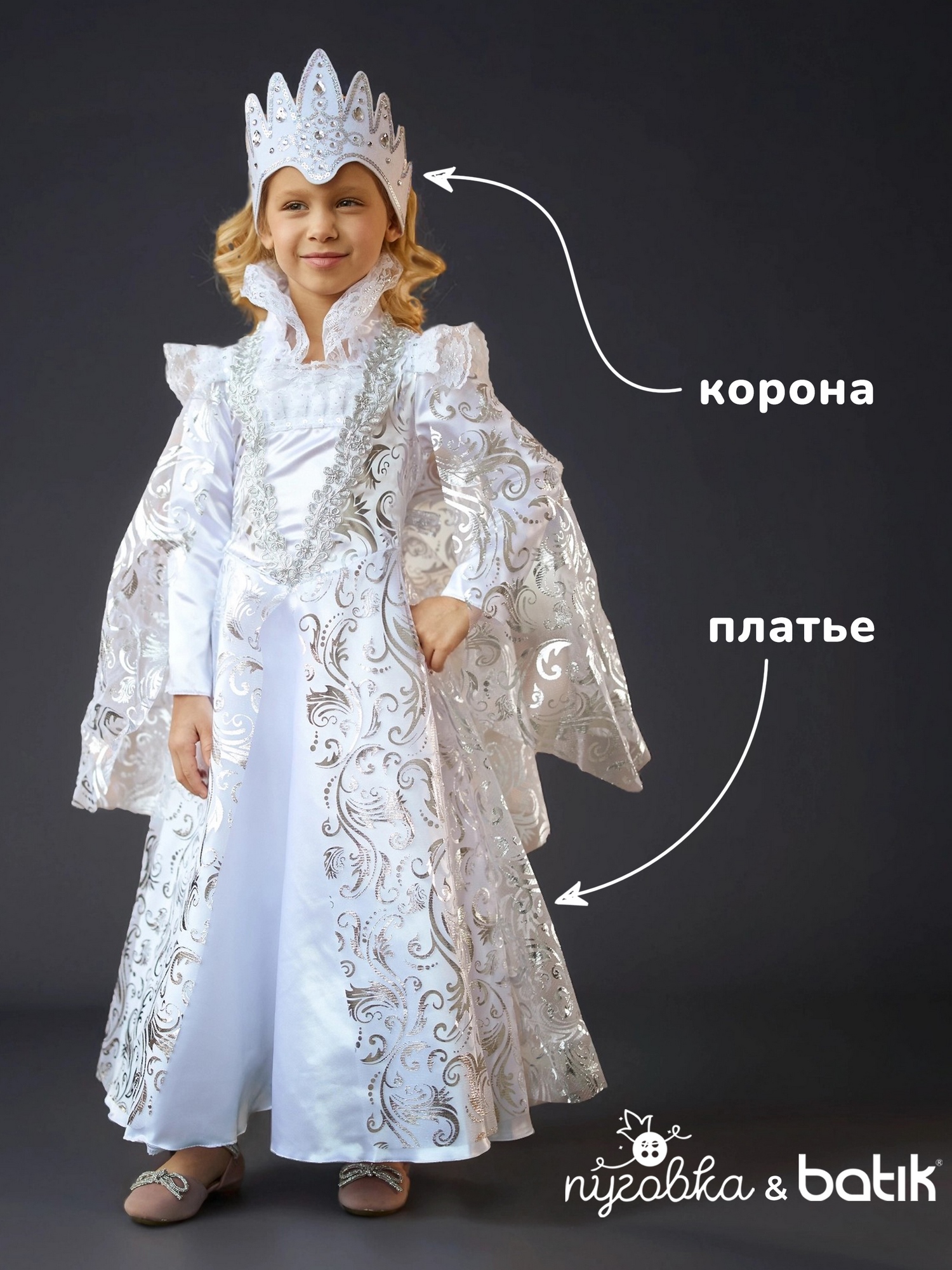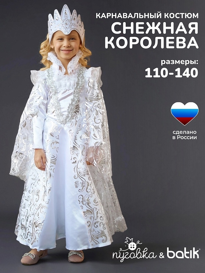 Героиня с холодным сердцем, способная вызвать метель и вьюгу, а еще разбить сердце на множество маленьких осколков… Конечно же, это Снежная Королева! И пусть в жизни девочка, надевшая этот карнавальный костюм, вовсе не будет такой жестокой и беспощадной, но все же привлечет к себе немало внимания и сможет почувствовать себя настоящей королевой. В комплекте платье и корона.