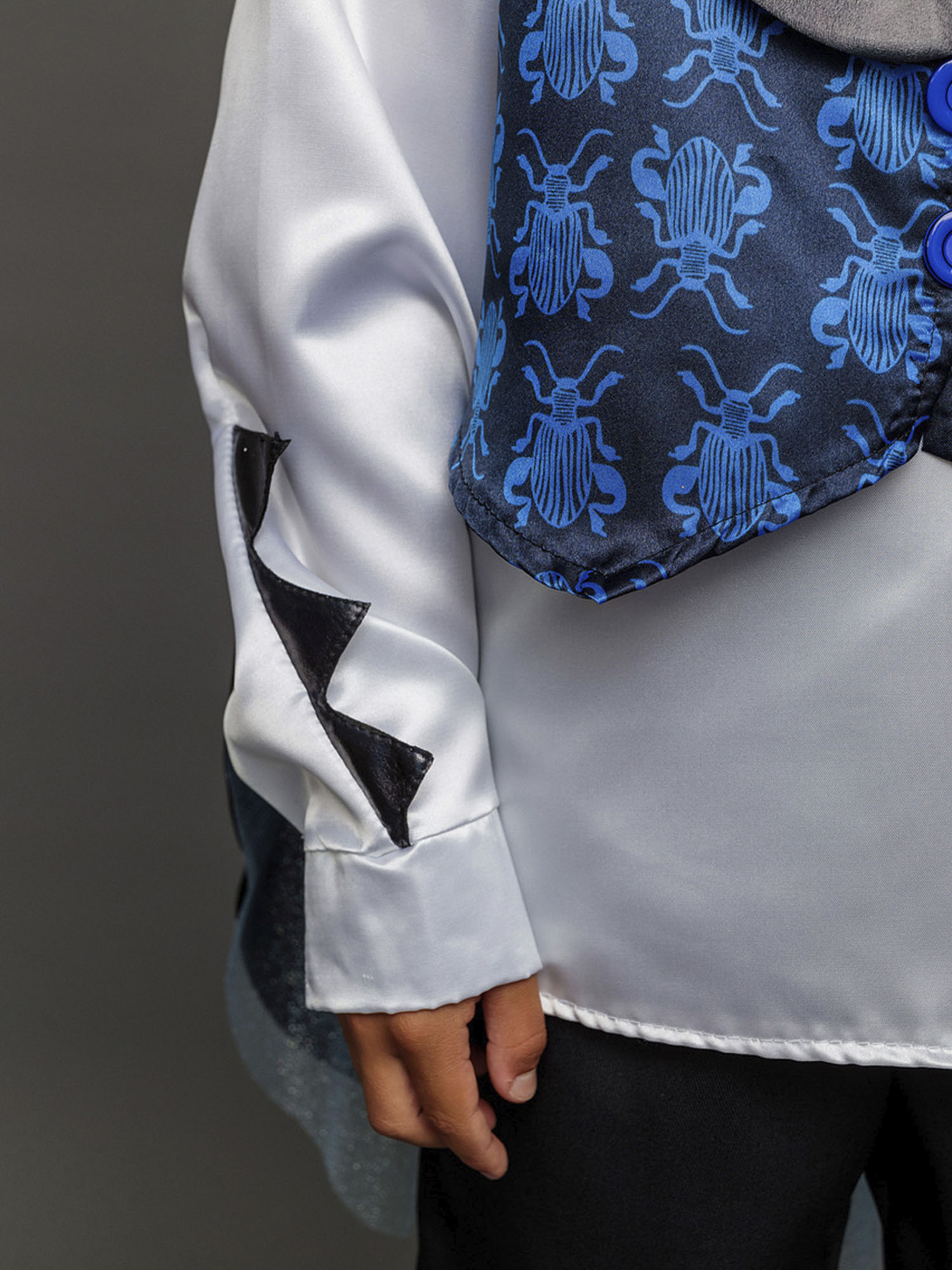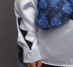 • Рубашка белого цвета с черными вставками (лапки жука) на рукавах