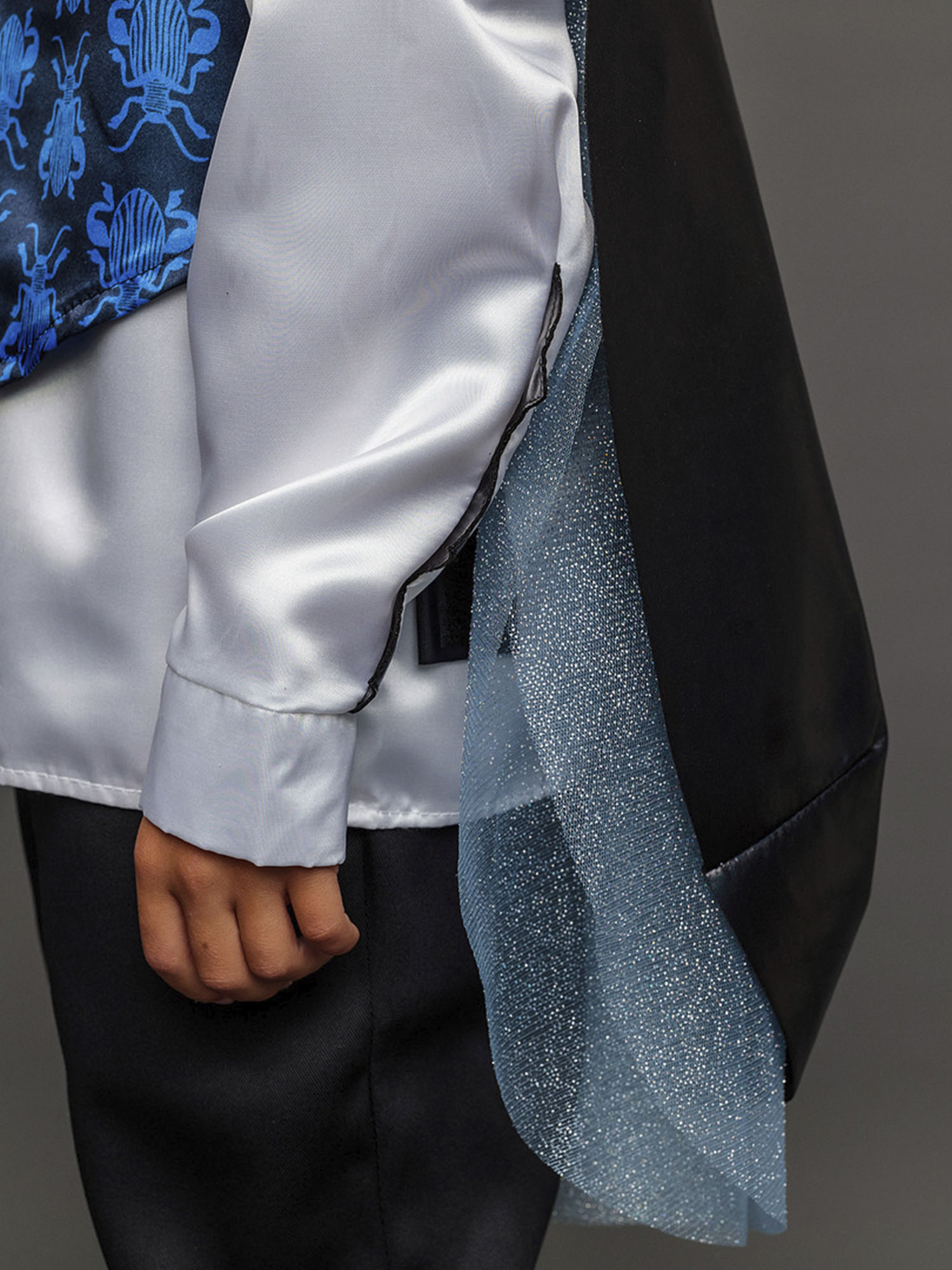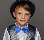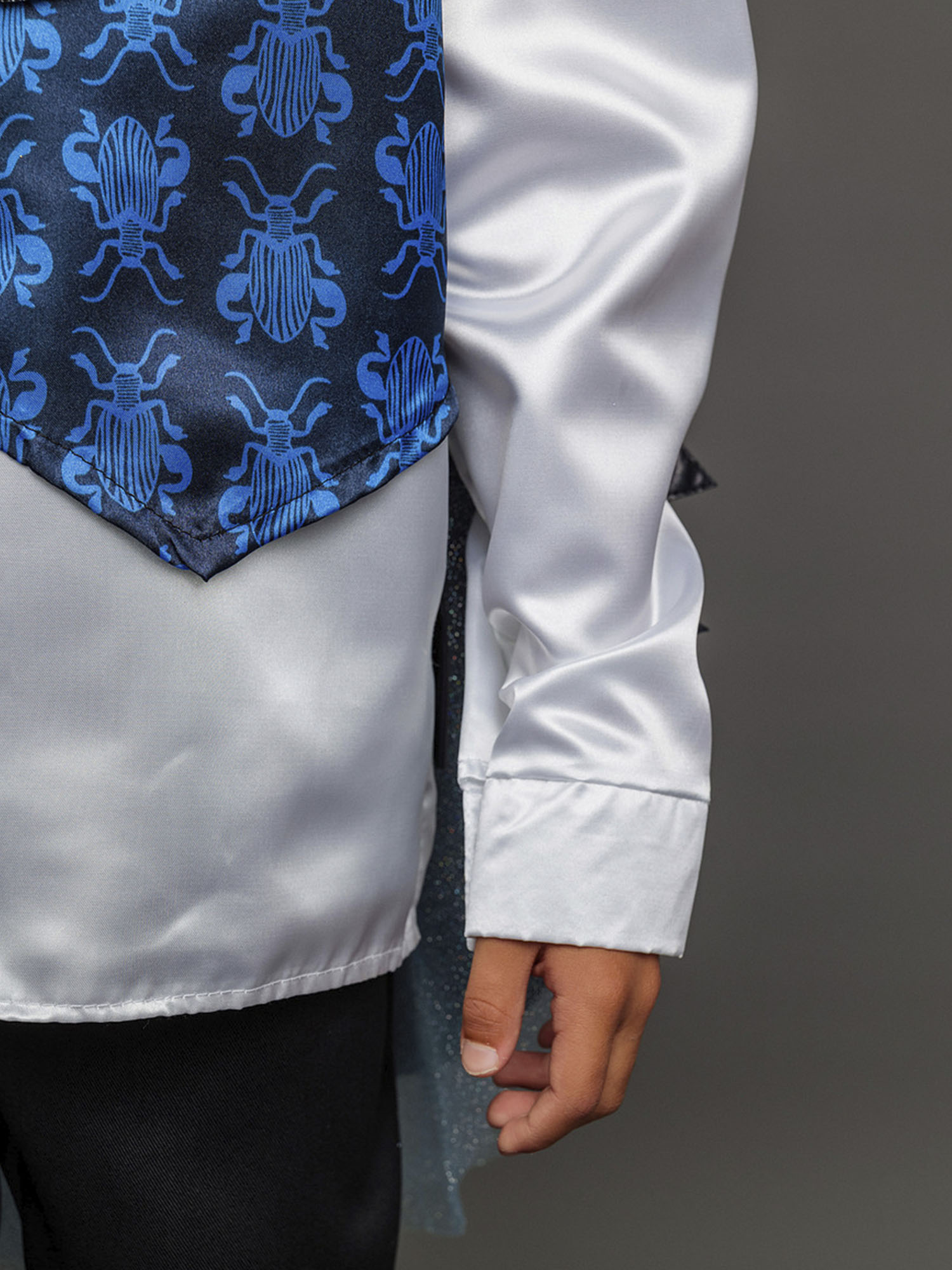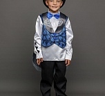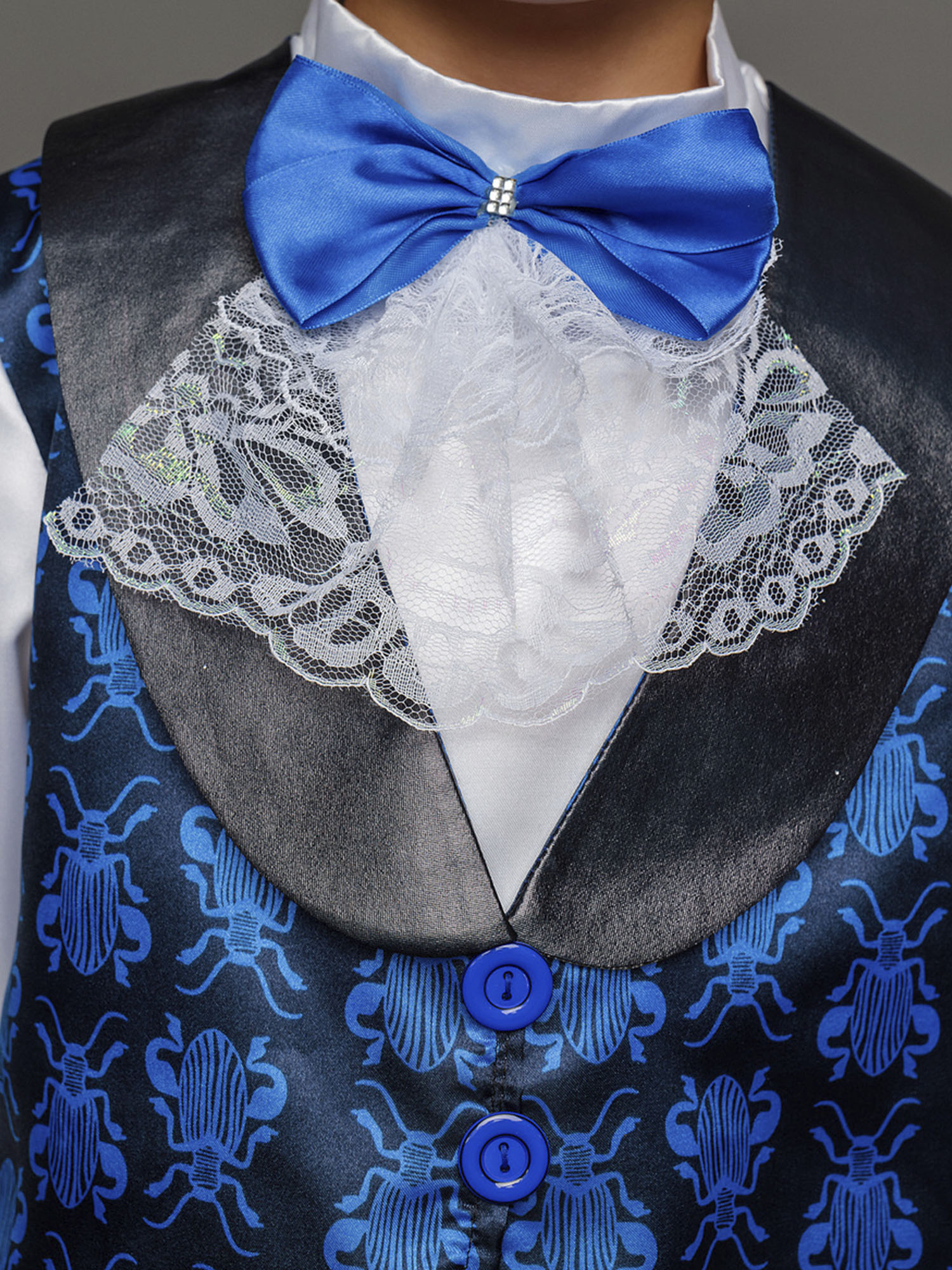 Костюм Жука детский маскарадный для выступлений и новогодних елок. Замечательный сказочный образ синего Жука выделит мальчика на костюмированном празднике. Комплект костюма Жук состоит из рубашки, жилета с крыльями, брюк и цилиндра.