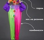 Карнавальный костюм Клоун — яркий и веселый образ для праздников, утренников и представлений! Костюм подарит море улыбок и отличное настроение. В комплект входит: комбинезон, колпак на резинке, парик и нос на резинке. Легкий и удобный, он позволит ребенку свободно двигаться и веселиться весь праздник.