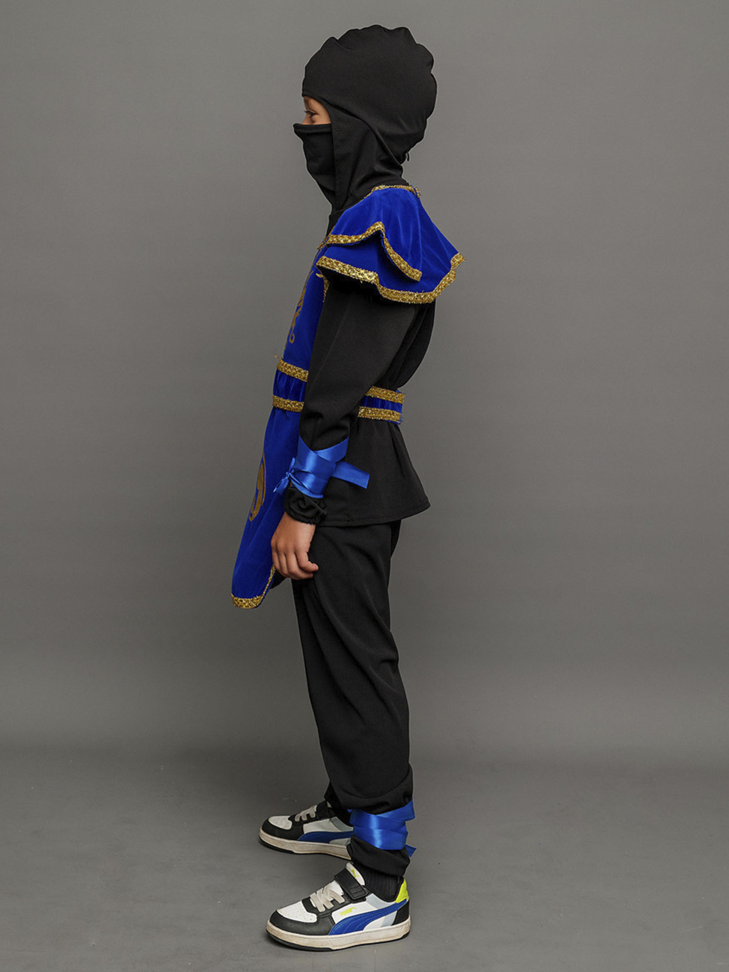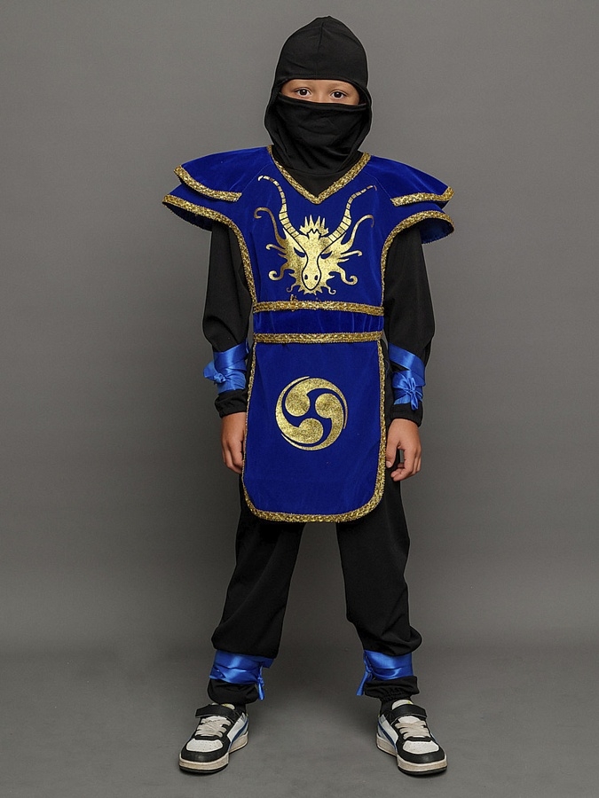 Мальчики могут вечно играть в ниндзя, прыгая и дурачась друг с другом. Карнавальный костюм Ниндзя, наверняка, приведет вашего ребенка в полный восторг! В нем он сможет пойти на новогодний утренник, елку, а также на тематический праздник-маскарад. В комплект образа входит рубашка с капюшоном, накидка с поясом, трико.