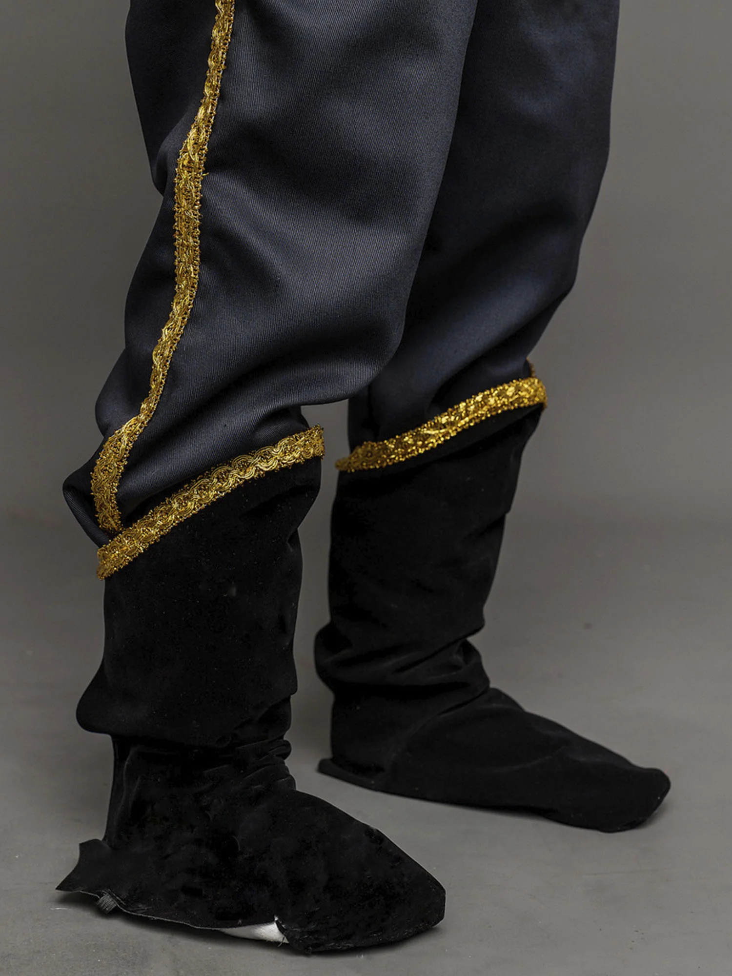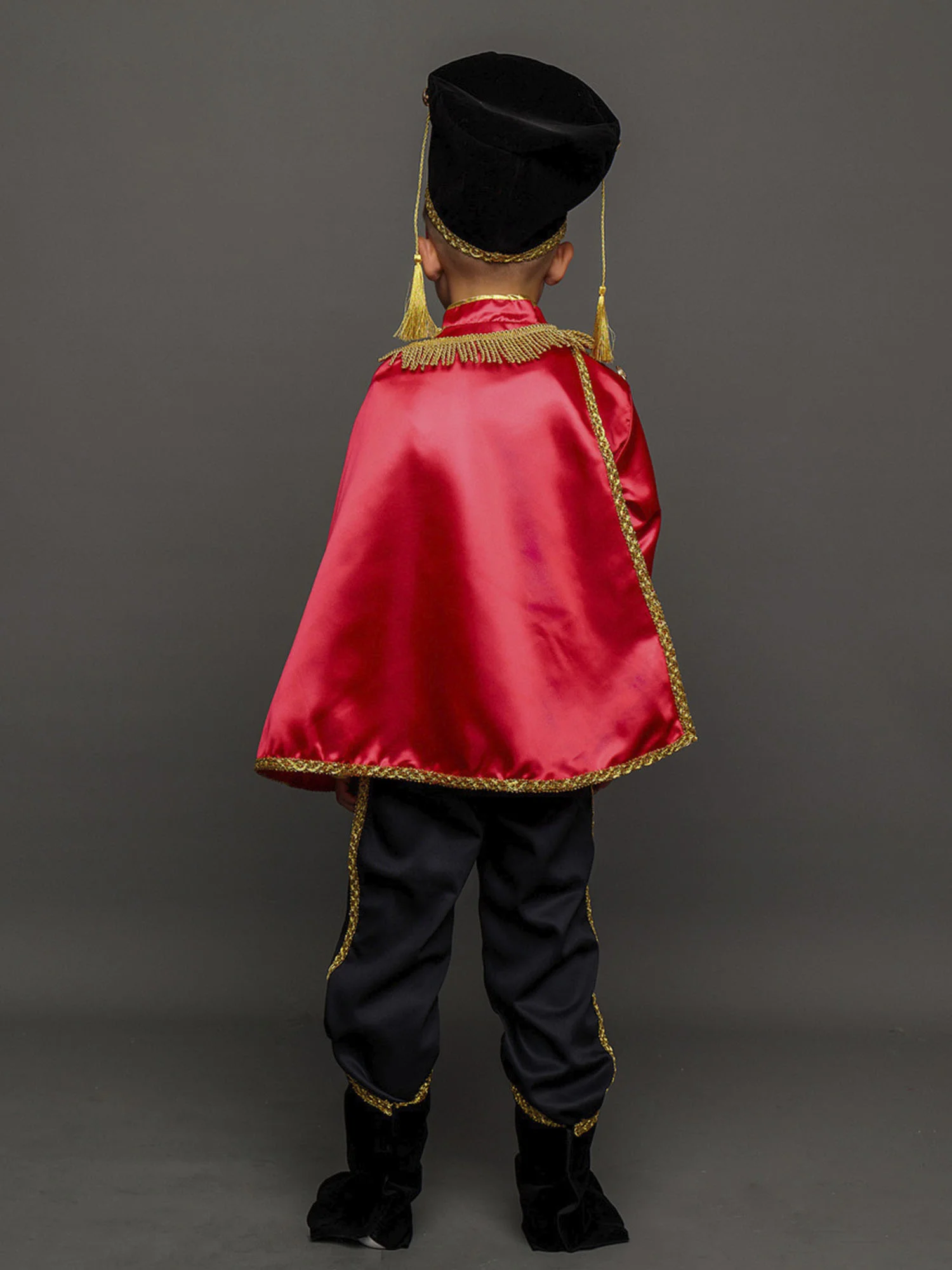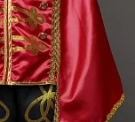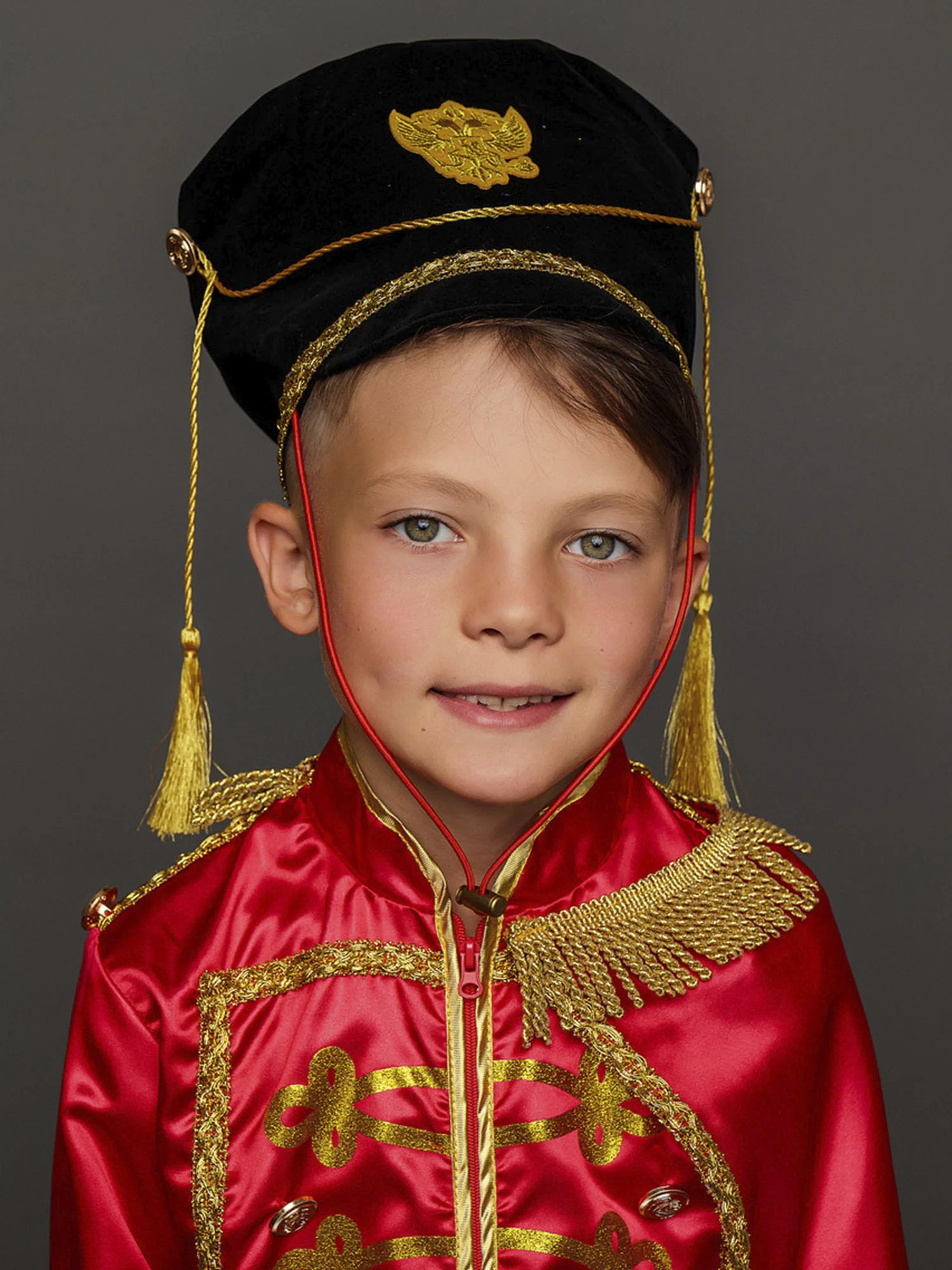 В карнавальном костюме "Гусар" легко почувствовать себя лихим воякой, рвущимся в бой. Такой яркий образ обязательно понравится всем мальчикам. Отлично подойдет для спектаклей, представлений, маскарада или детского утренника. Костюм, состоящий из мундира, кивера, брюк с сапогами и плаща, будет прекрасно смотреться на мальчике любой комплекции.