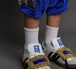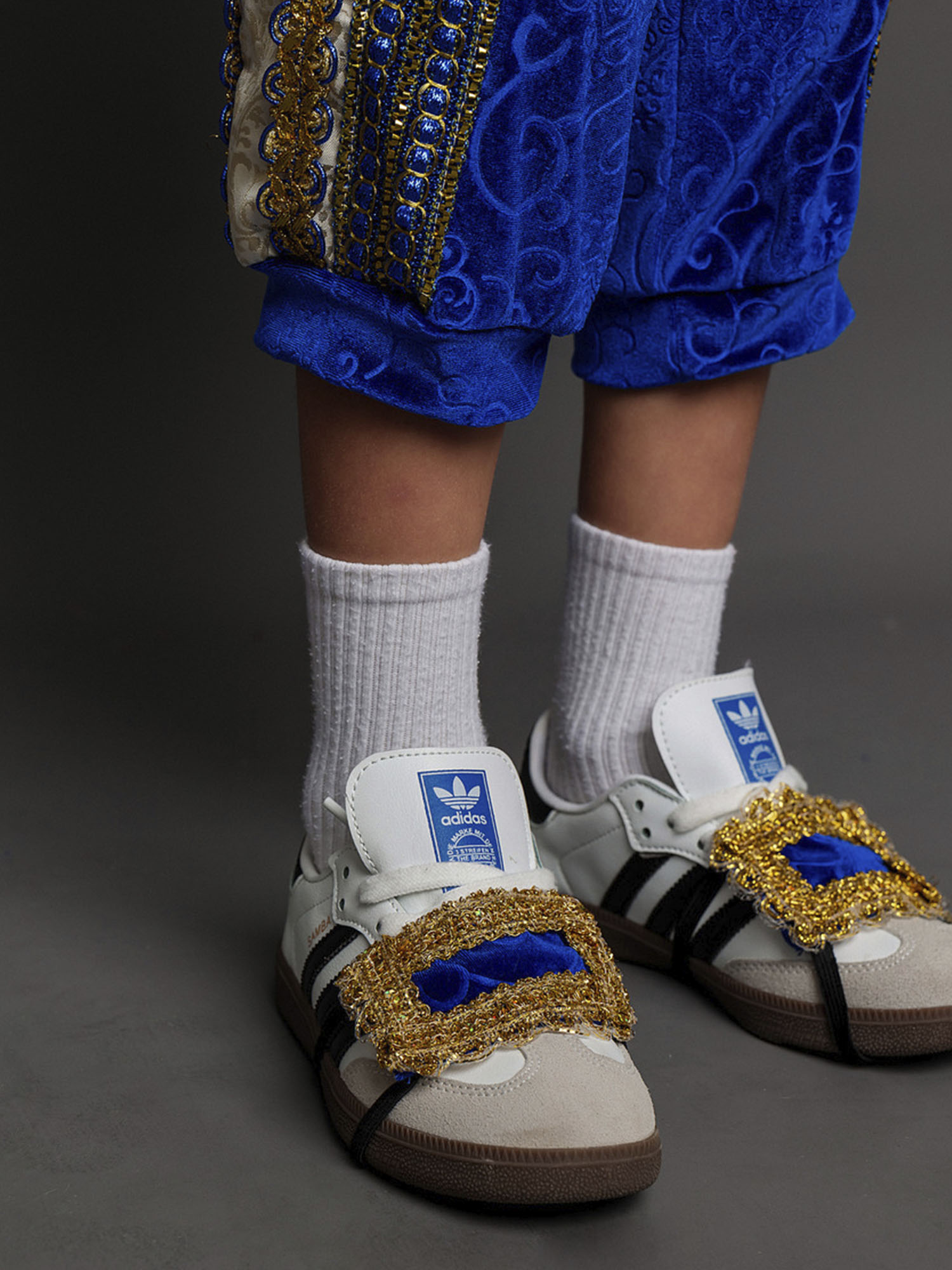 • Бриджи синие с золотистыми вставками и резинкой в поясе