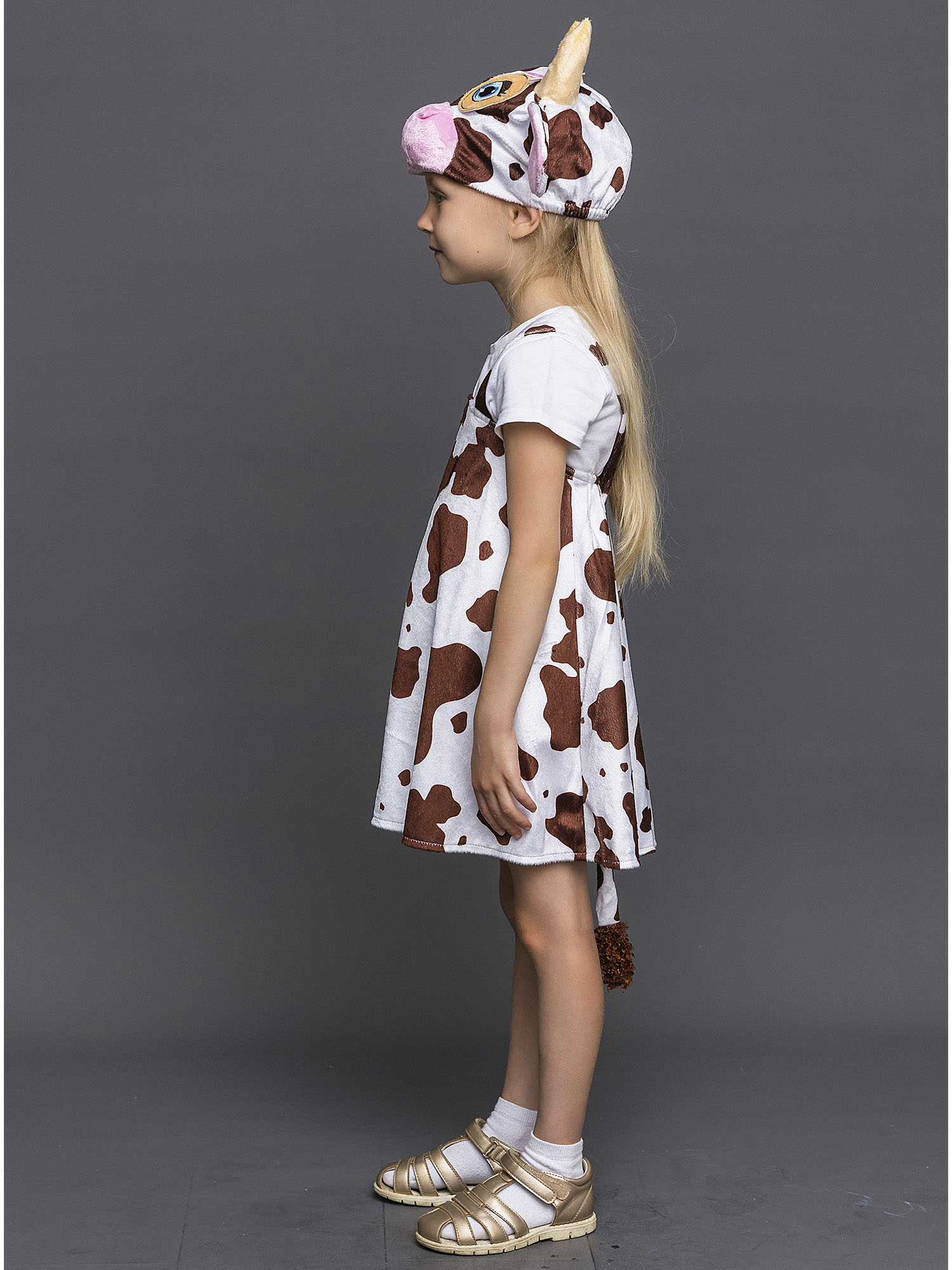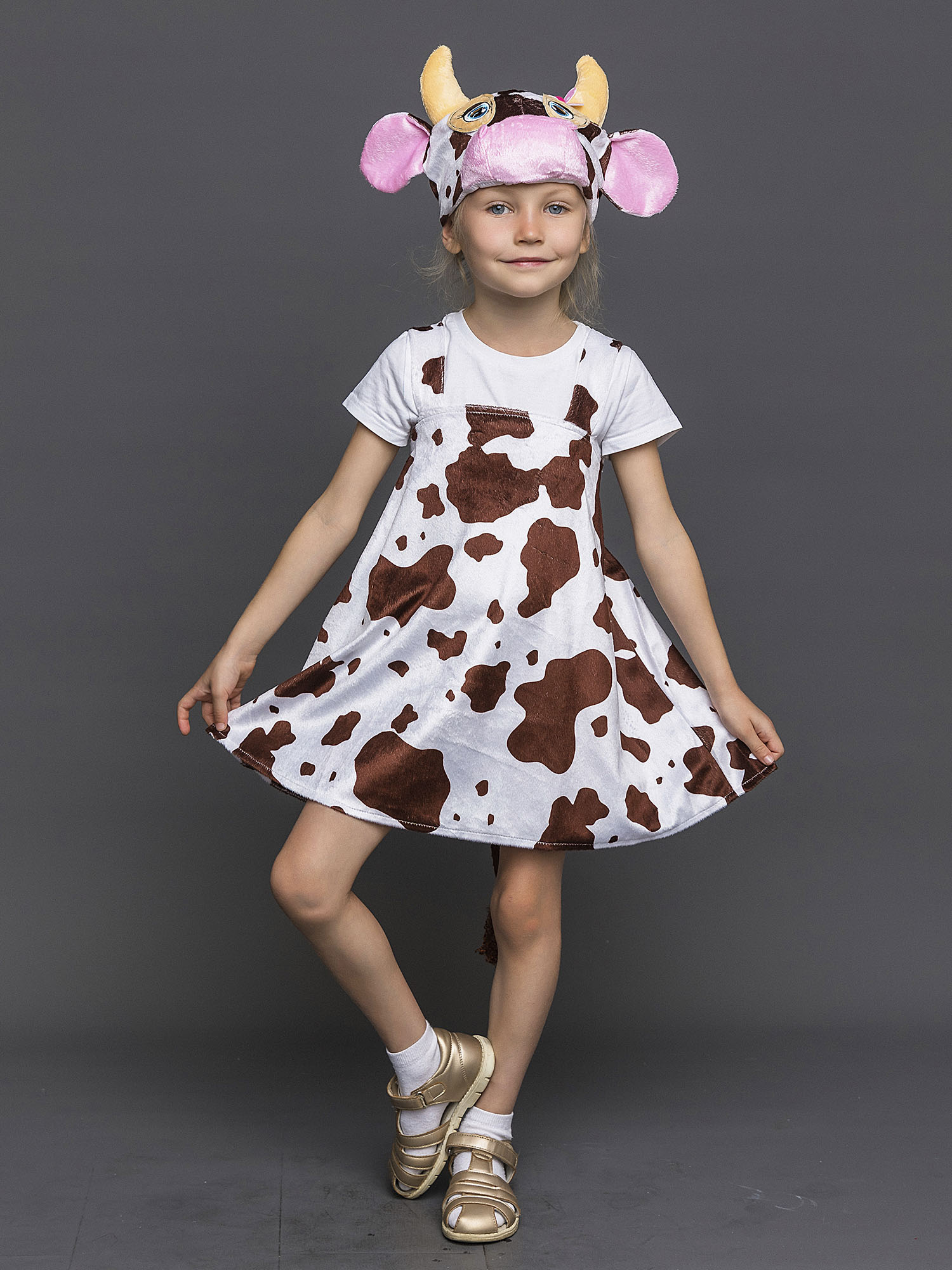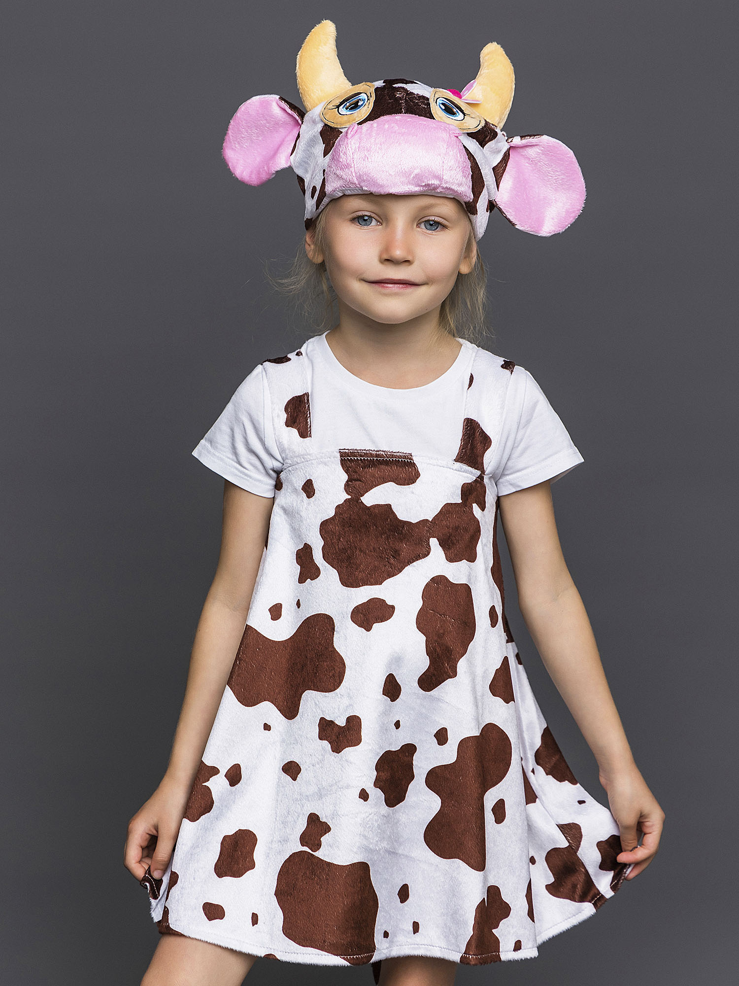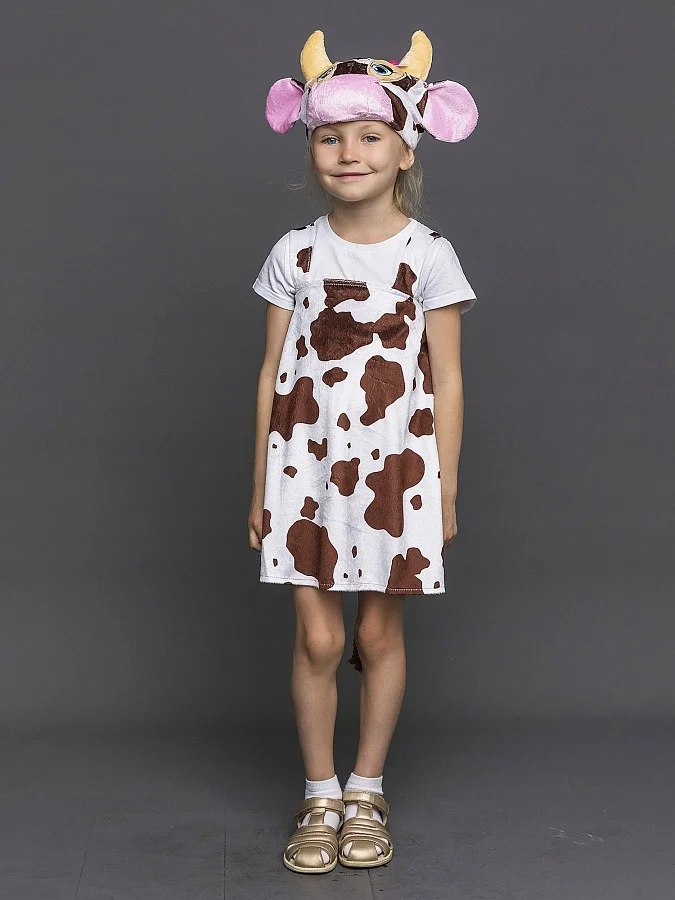 Костюм Коровка Мурка для девочки плюшевый карнавальный. Новинка 2020 года! Оригинальный образ для выступлений и спектаклей. Комплект костюма состоит из пятнистого сарафана и маски-шапочки.