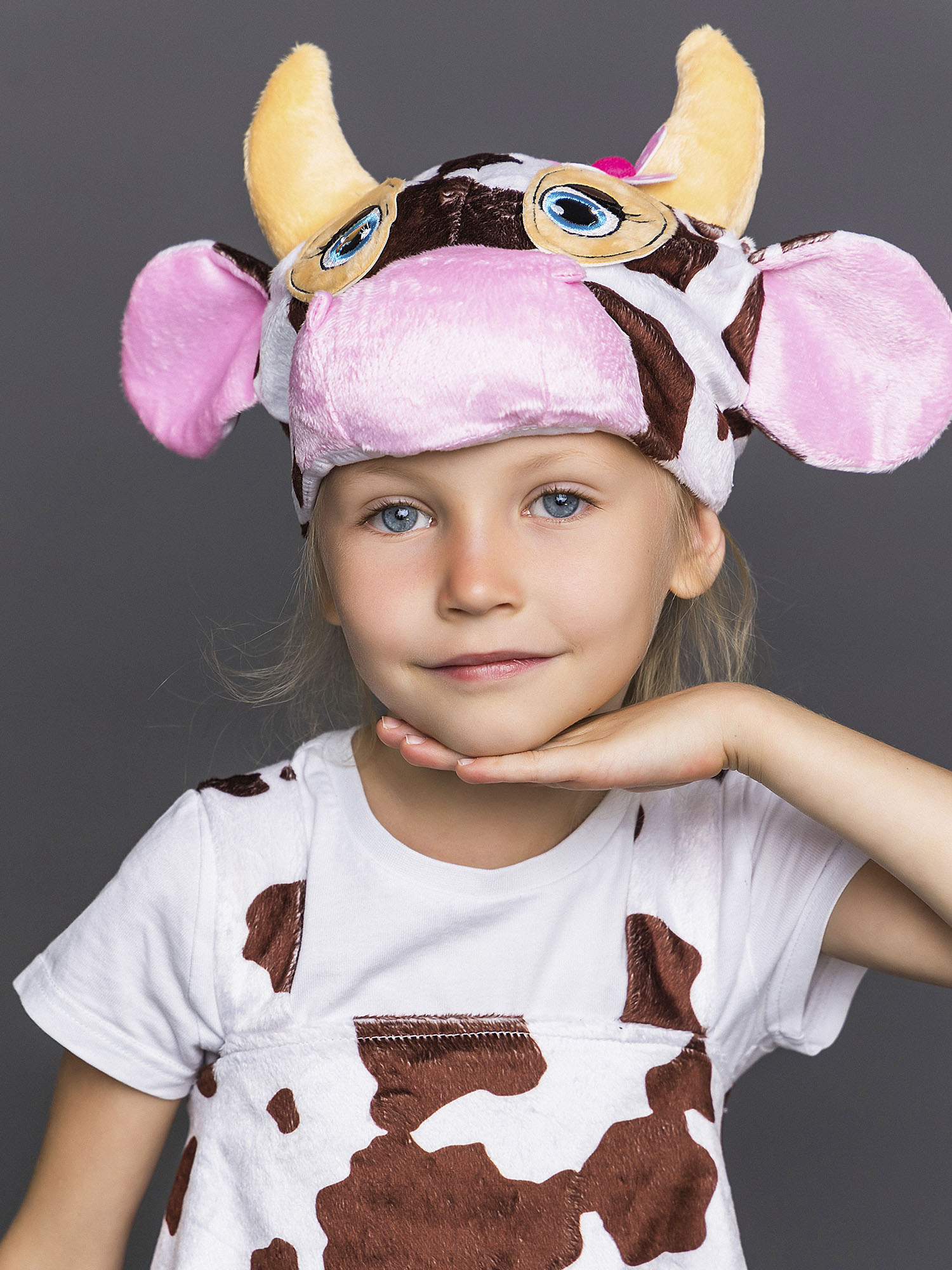 • Маска-шапка с рогами, ушами и мордочкой коровы