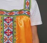 • Ленты с орнаментом вдоль сарафана и на лямках