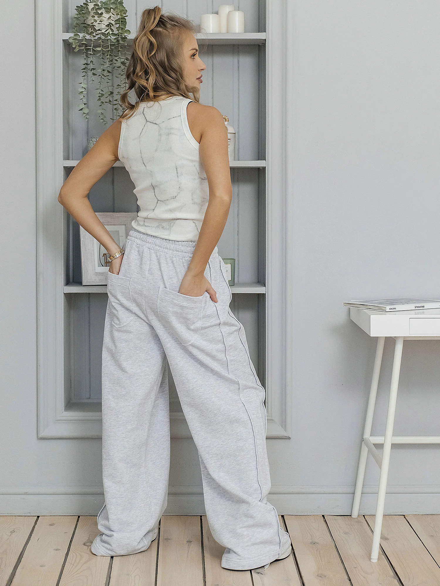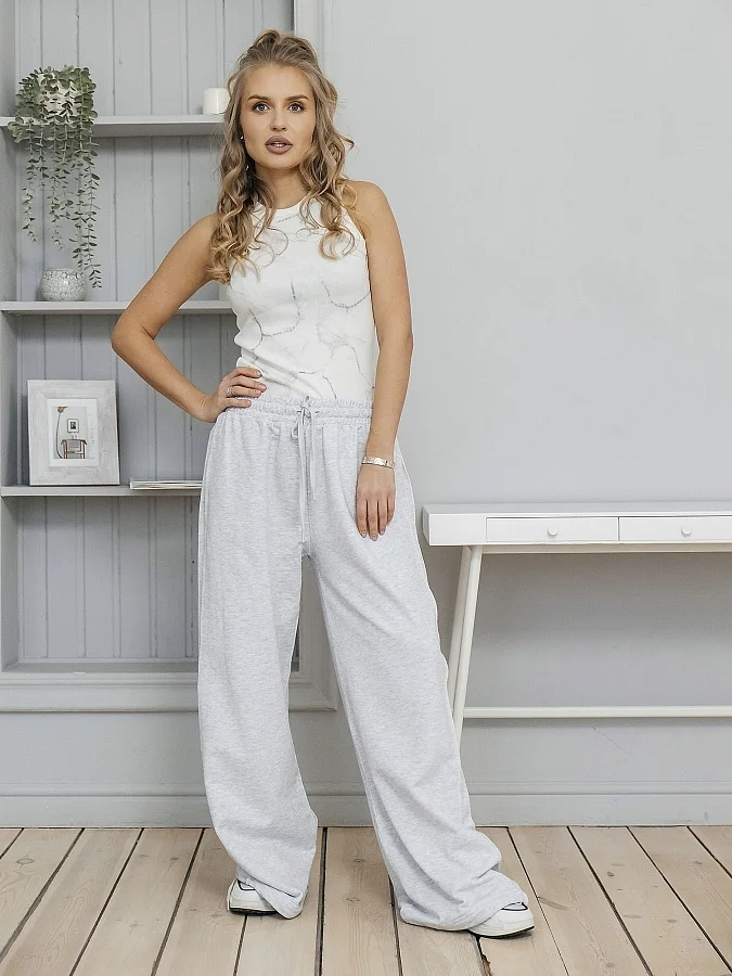 Брюки спортивные из футера 3-х нитки (80% хлопок, 20% полиэстер). Мягкий, эластичный и плотный материал комфортно прилегает к телу, сохраняет форму и обеспечивает свободу движений в течение всего дня. Универсальная модель для спорта и повседневной носки. Цвет — серый меланж.