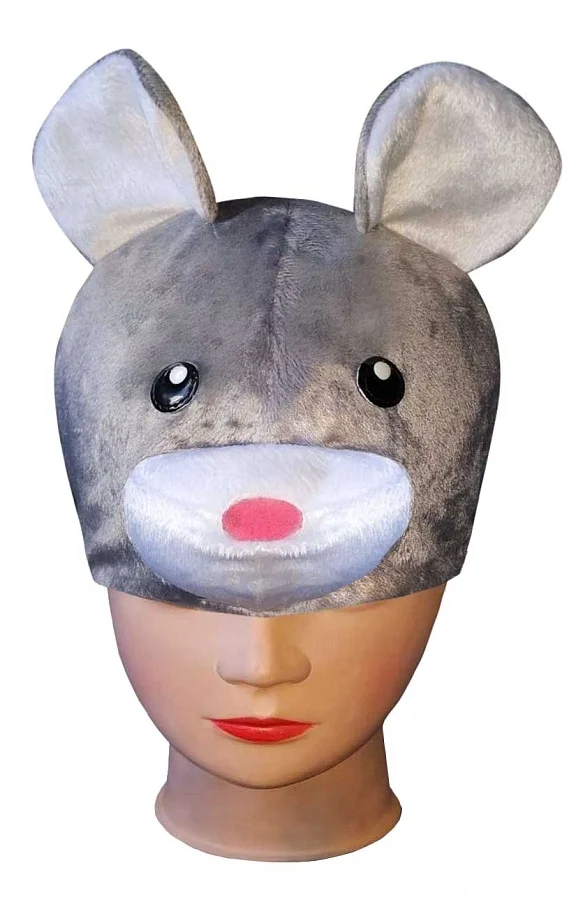 Маска детская Мышонок маскарадная для утренников и спектаклей. Милая плюшевая маска-шапка в серой расцветке представлена в одном универсальном размере. Подойдет как мальчикам, так и девочкам.