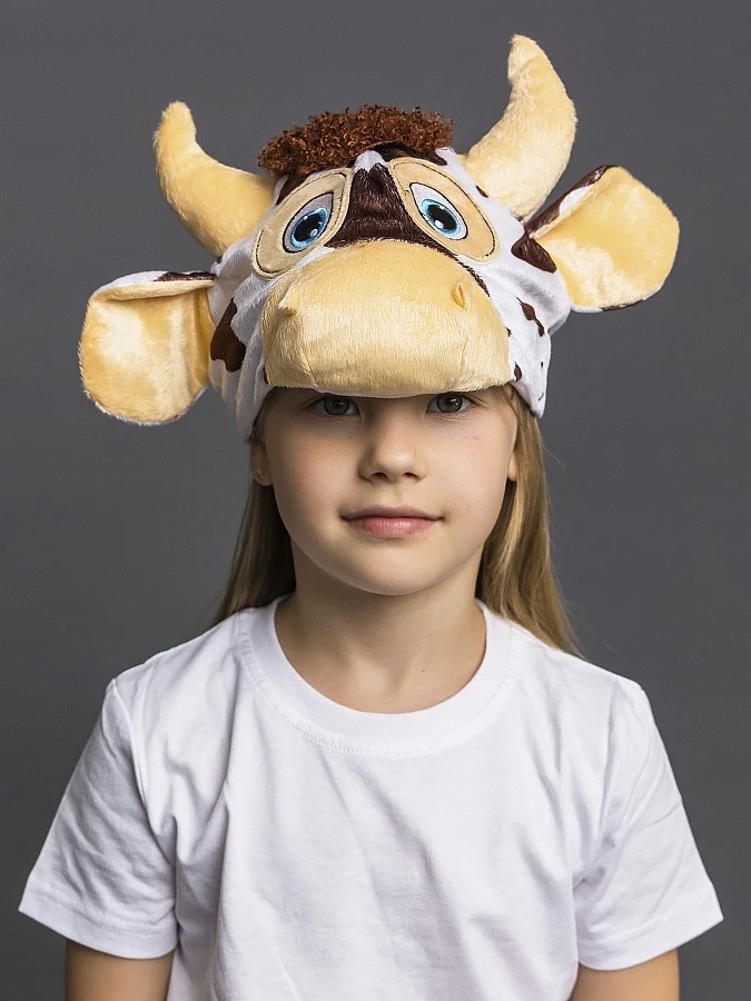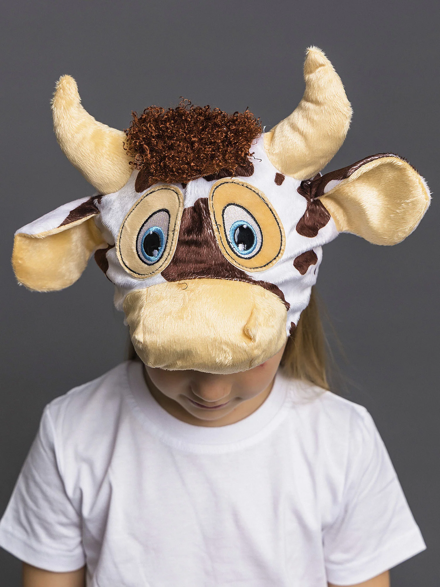 Маска Теленка плюшевая с хлопковым подкладом. Красивая маска с ушками и рогами.