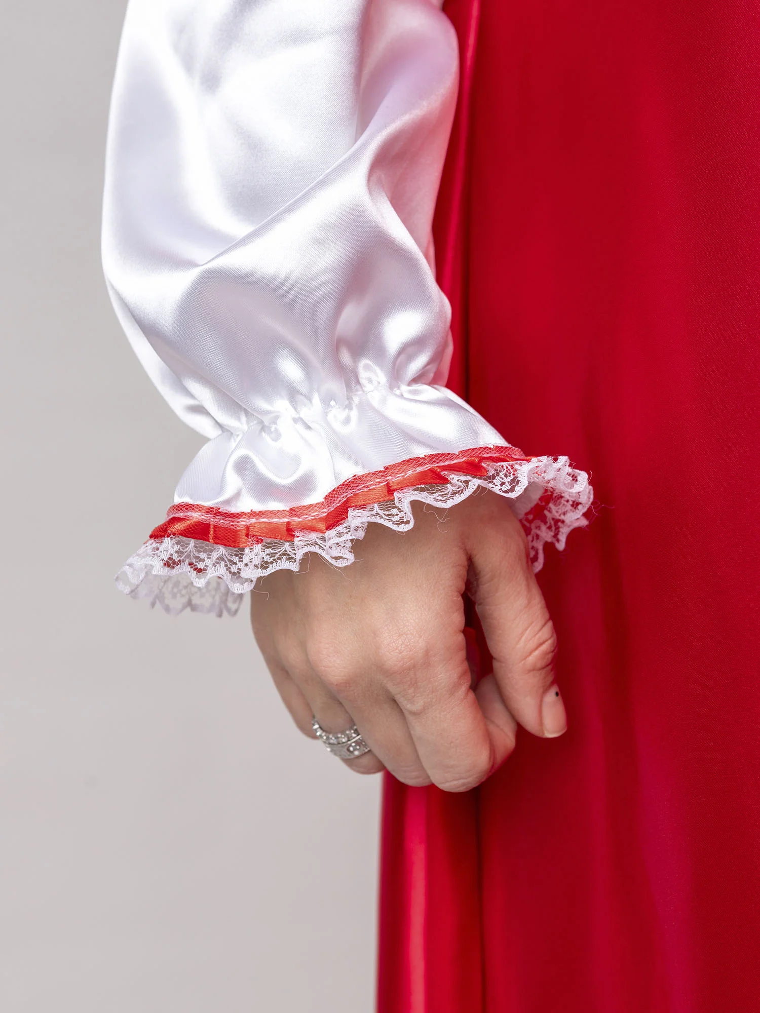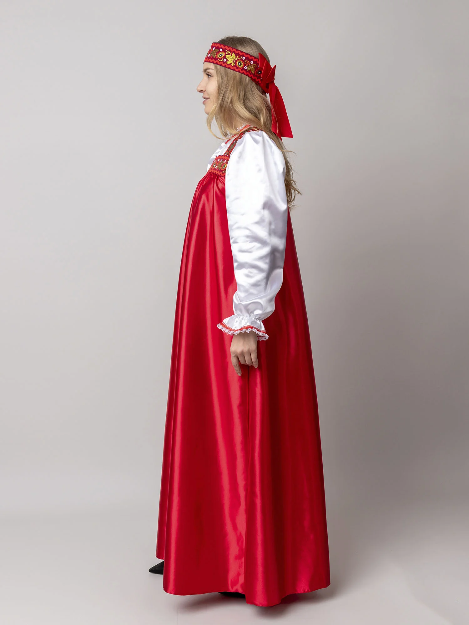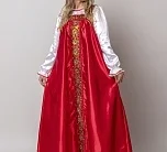 Карнавальный костюм «Марья Искусница» в красном цвете — яркий и эффектный образ в русском народном стиле. Наряд с декоративной отделкой и выразительными деталями создаёт праздничное настроение и отлично подойдёт для выступлений, утренников и тематических мероприятий.