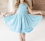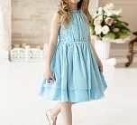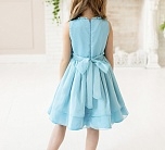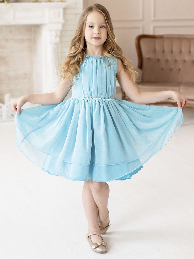 Нарядное голубое платье в романтичном стиле без рукавов. Поясок из бусин. Подкладка 100% хлопок.