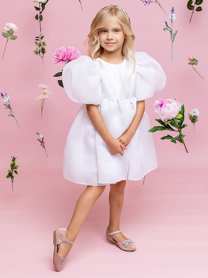 Нарядное платье Джульетта от batik из матовой органзы и кристалона с пышной юбкой и рукавами. Белое платье для девочек станет отличным приобретением для праздника, выпускного или фотосессии. Платье выполнено из нежного материала, который приятен на ощупь и обеспечивает комфорт при ношении.