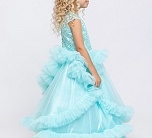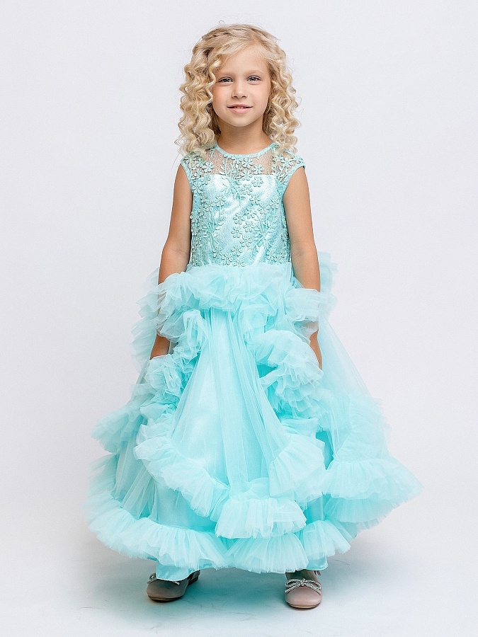 Нарядное платье с пышной юбкой из сетки. Длинное платье в яркой мятной расцветке с цветочным узором на лифе. Подкладка 100% хлопок. Праздничное платье подойдет на выпускной в детский сад и школу. Платье выполнено из мягкого сатина с блестящим топом и пышной юбкой.
