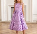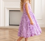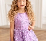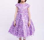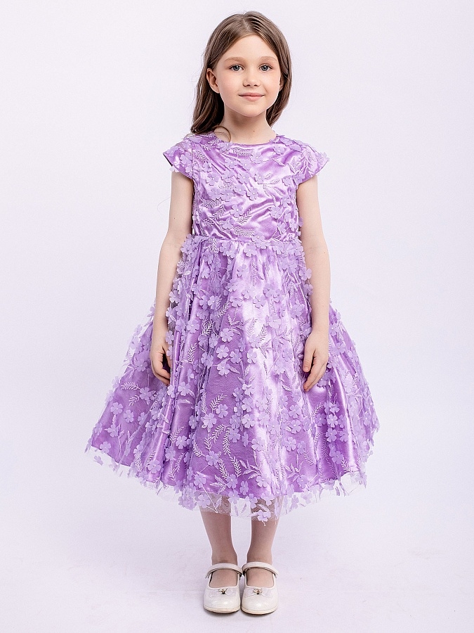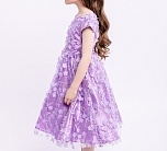 Нарядное сиреневое платье с пышной юбкой. Тонкая сетка с вышивкой. Подкладка 100% хлопок. Платье для девочки без рукавов украшено объемными мелкими цветами. Отличный вариант для подарка.