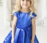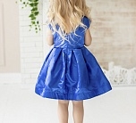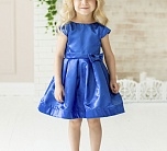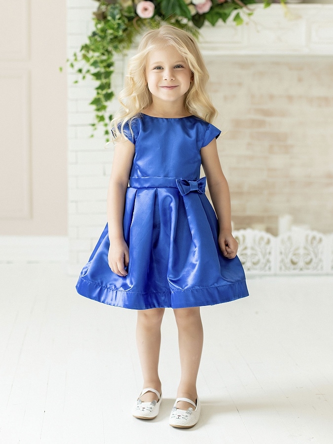 Нарядное синее платье с пышной юбкой из сатина. Короткий рукав, спереди бант. Подкладка 100% хлопок.