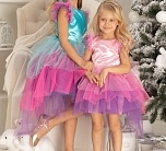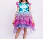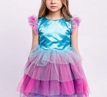 Платье Мелоди детское нарядное разноцветное. Пышная многослойная юбка со шлейфом. Блестящий атласный лиф. Короткие рукава с оборками. Завязка на спинке. Нарядное пышное платье подойдет для любого торжества.