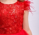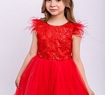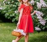 Нарядное коралловое платье с пышной юбкой из фатина. Гипюр на лифе, рукава из перьев. На спинке имеется поясок чтобы дополнительно утянуть талию. Подкладка 100% хлопок. Праздничное платье для ребенка от batik на праздник будет превосходно смотреться.
